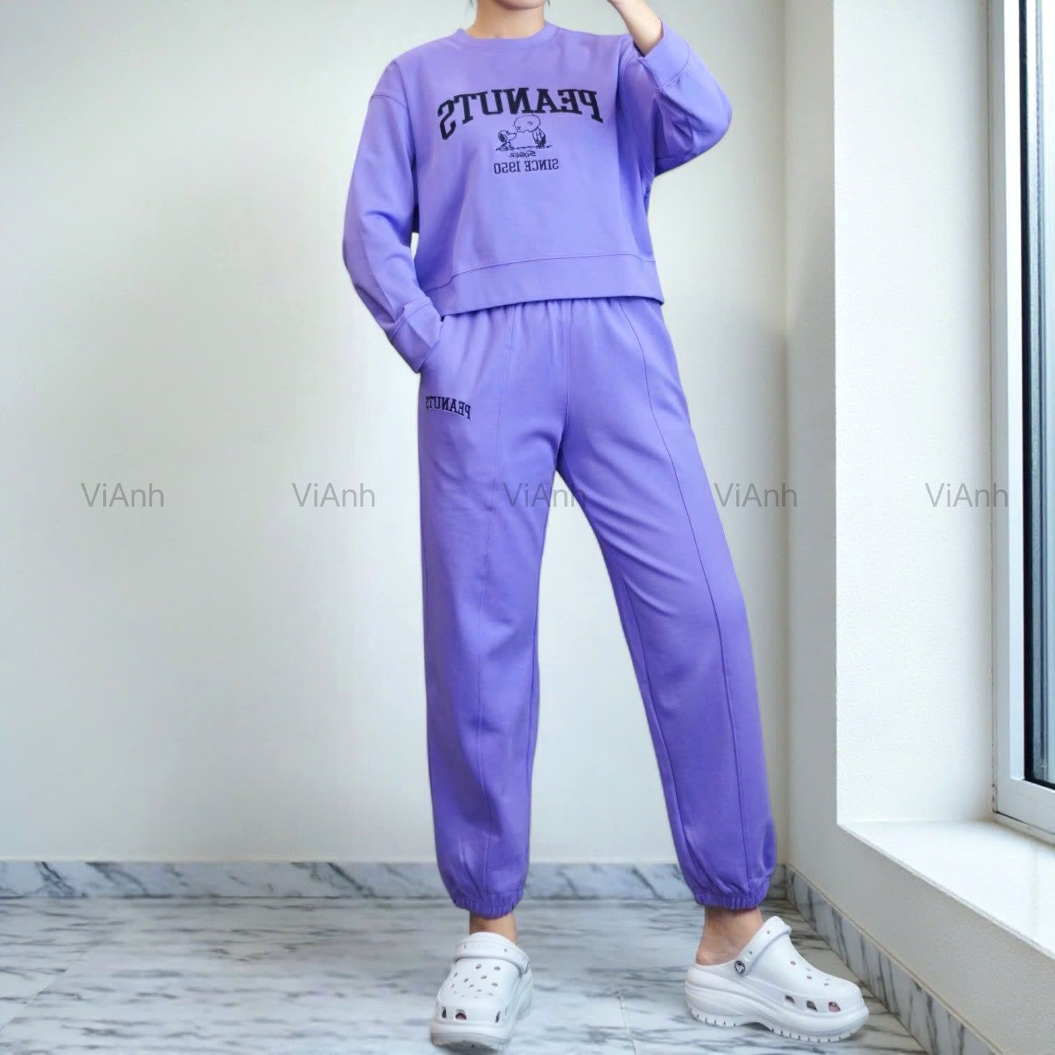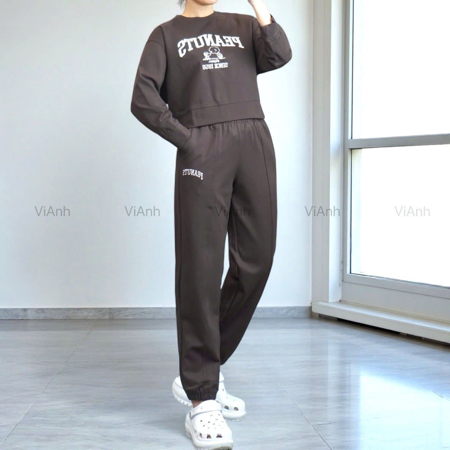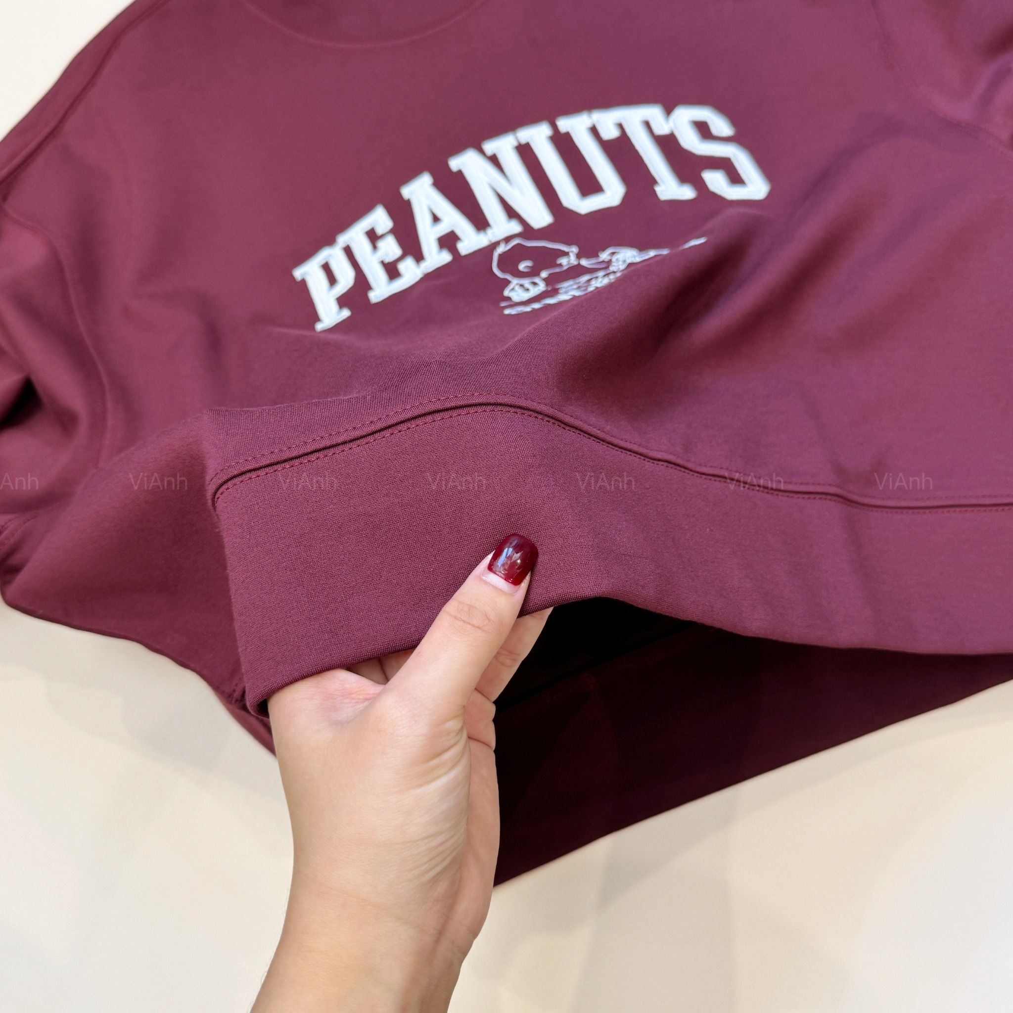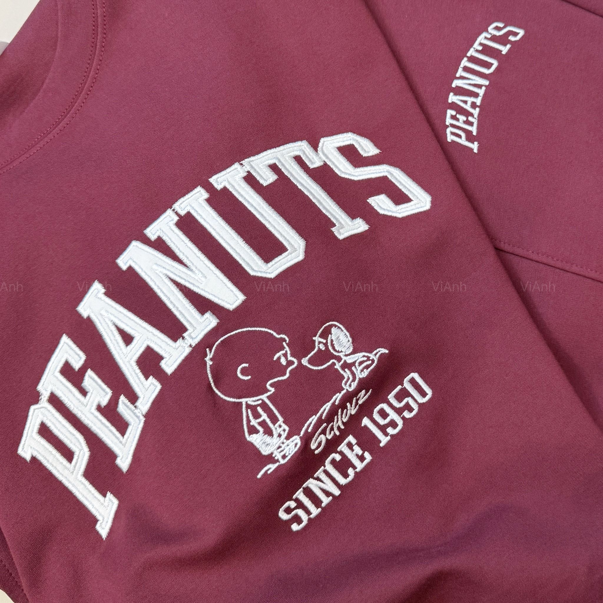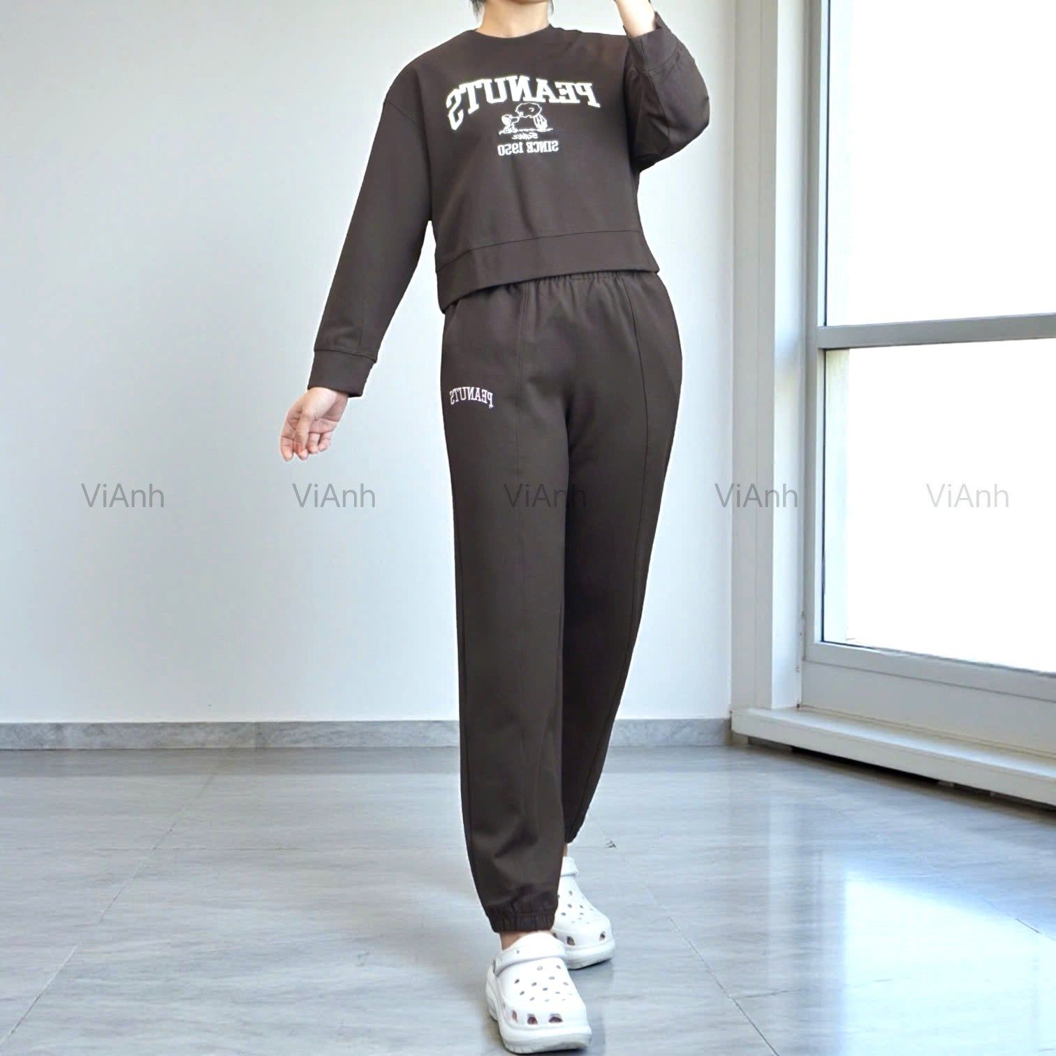 Bộ dài tay hình thêu PEANUTS Uni chất Umi Hàn Quốc