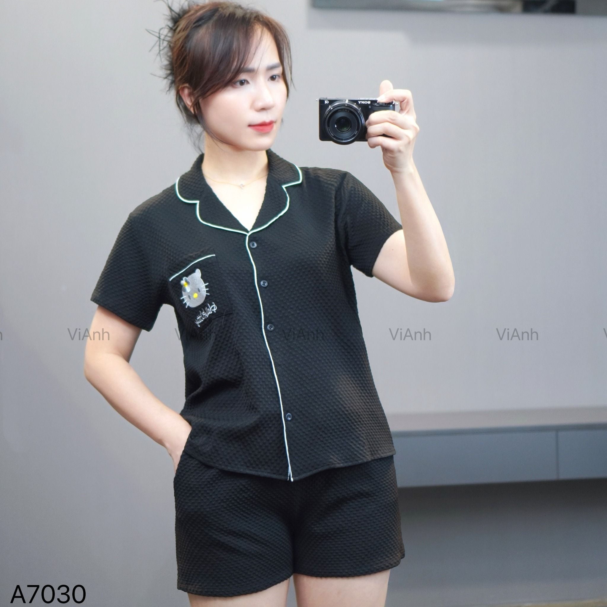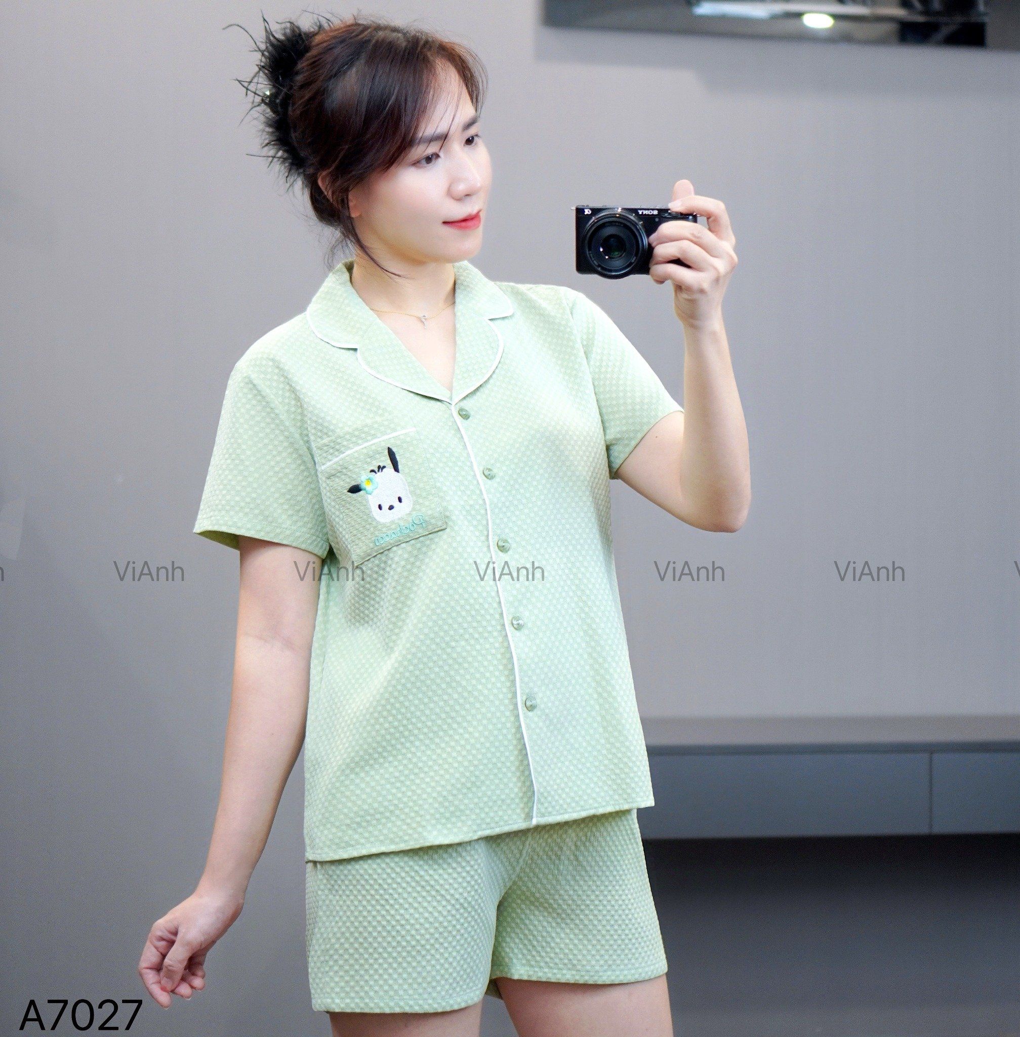 Bộ pijama quần đùi màu siêu đẹp, hình thêu xịn xò, chất co giãn nhẹ tênh.