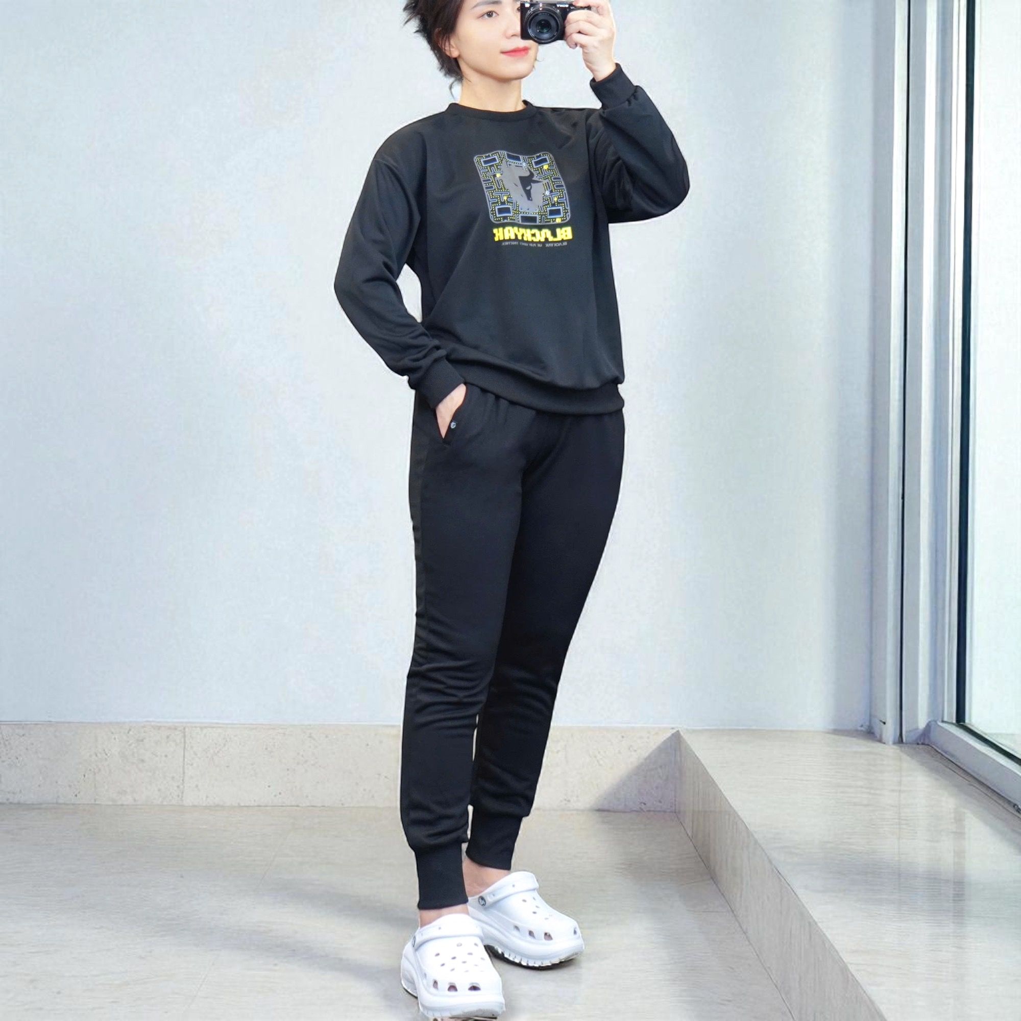 Bộ nỉ dài tay trẻ em style Hàn / A69 ghi , A70 đen
