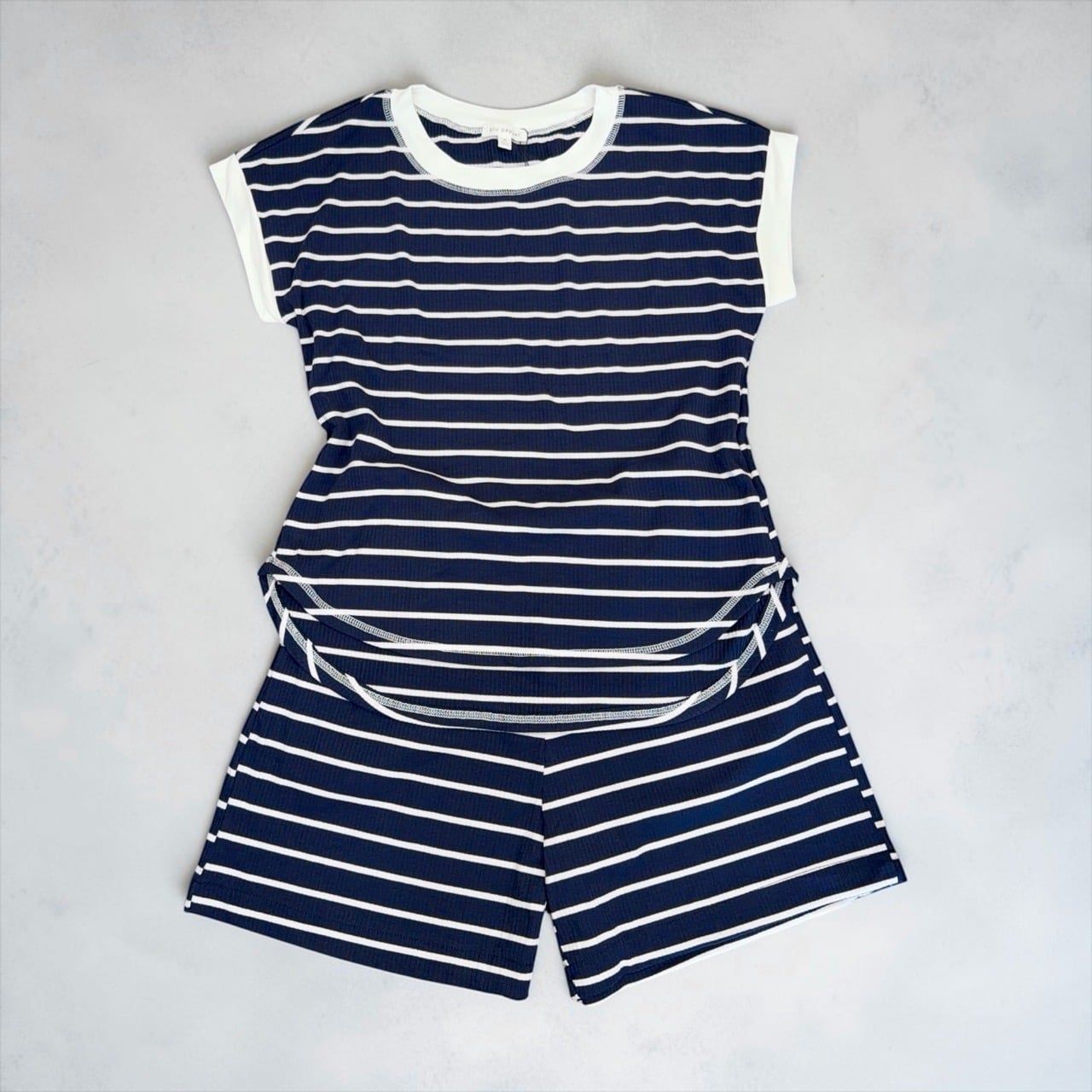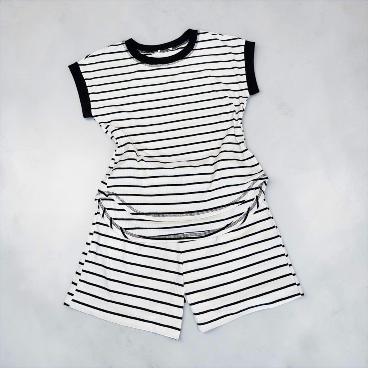 Bộ thun gân ngắn tay style US / D181 xanh - D182 trắng