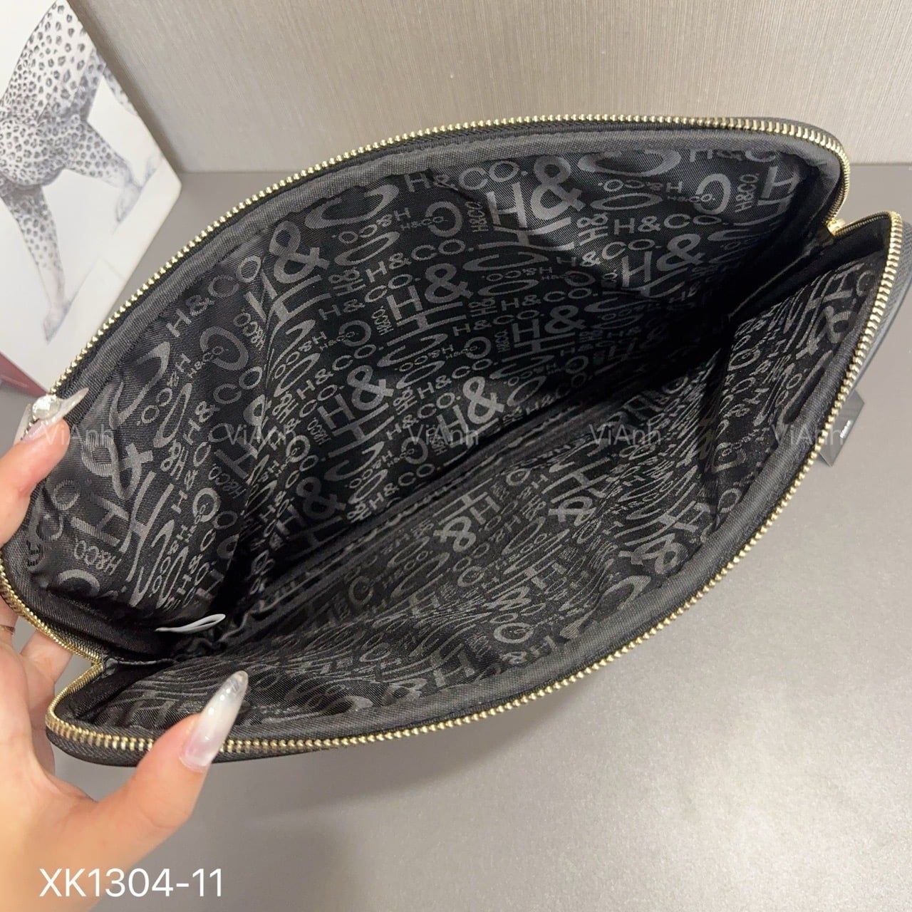Clutch B368X style Âu Mỹ chữ nhật hoạ tiết chữ XK1304-11 / 35x26 / XÁM ĐEN