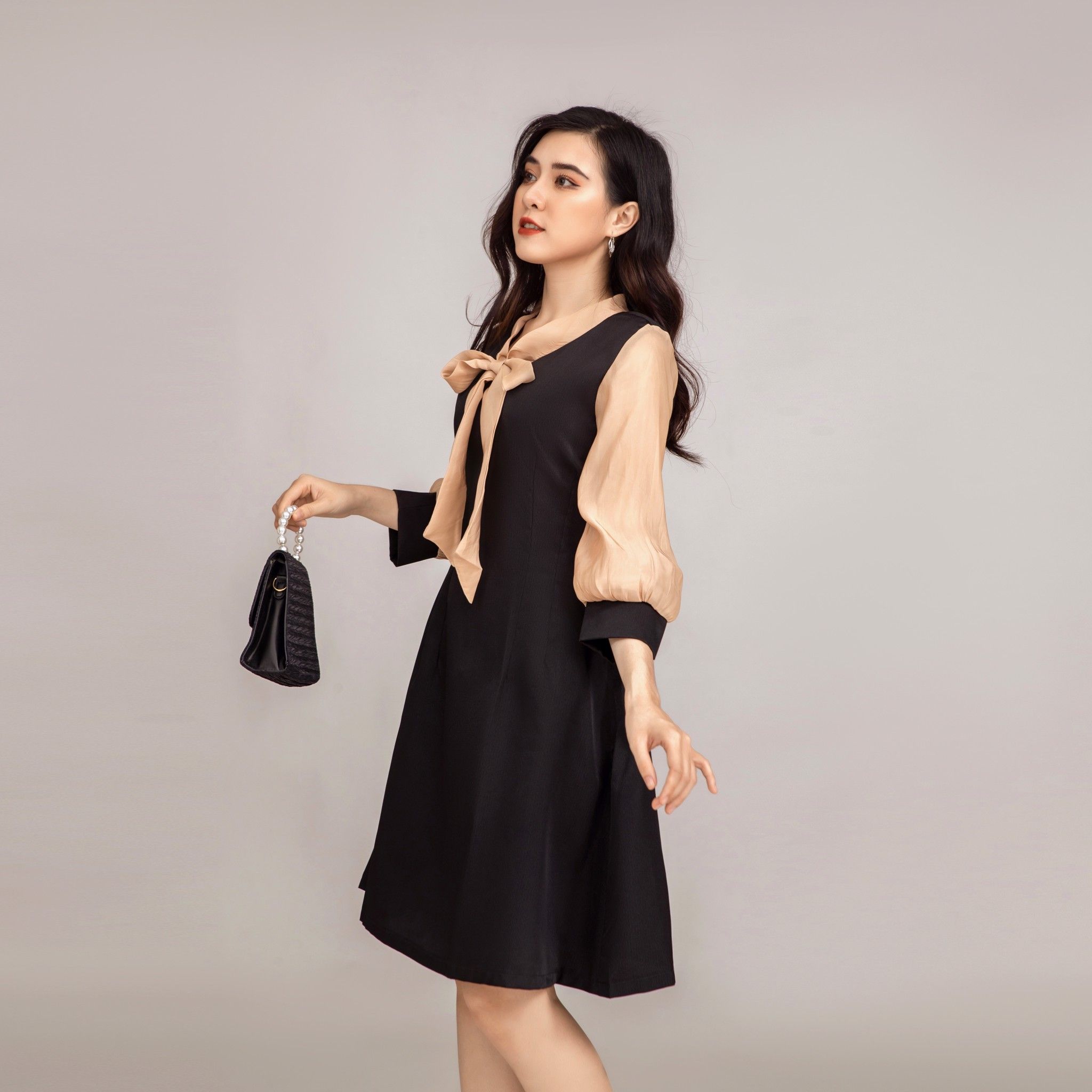 Đầm Nữ Phối Nơ Cổ Sang Trọng V0195