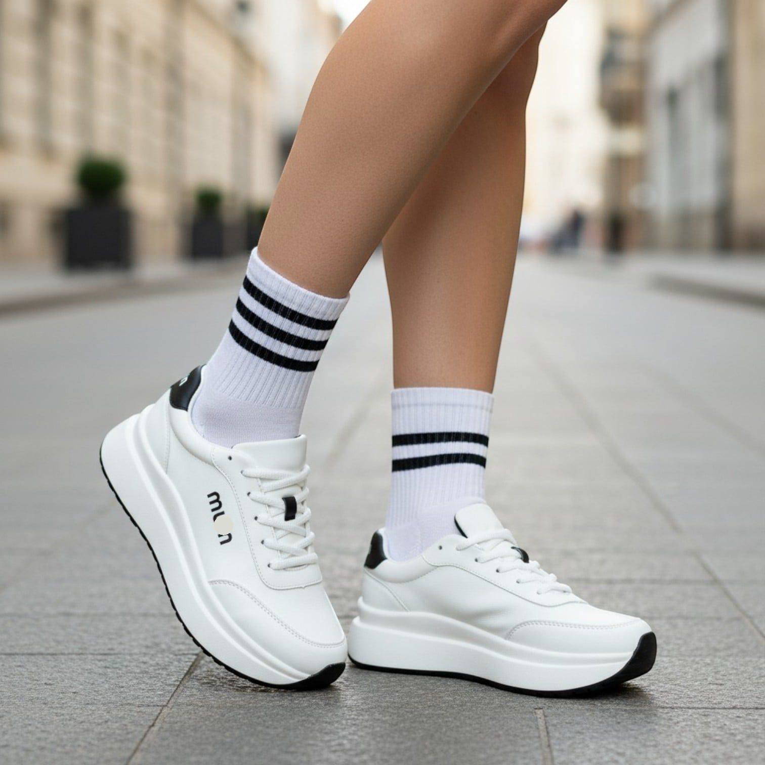 Giày thể thao nữ cao 5cm Purlina / TRẮNG