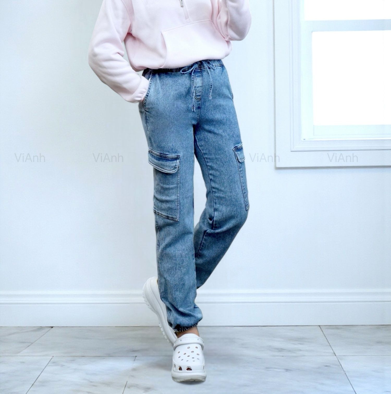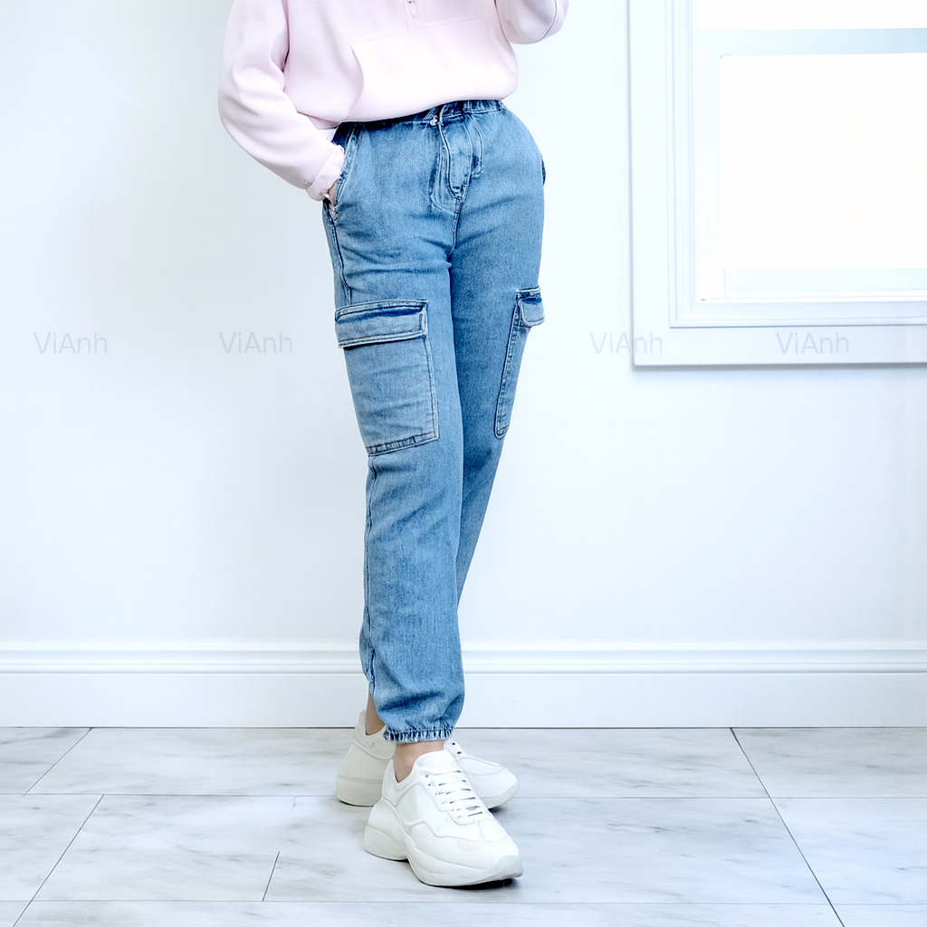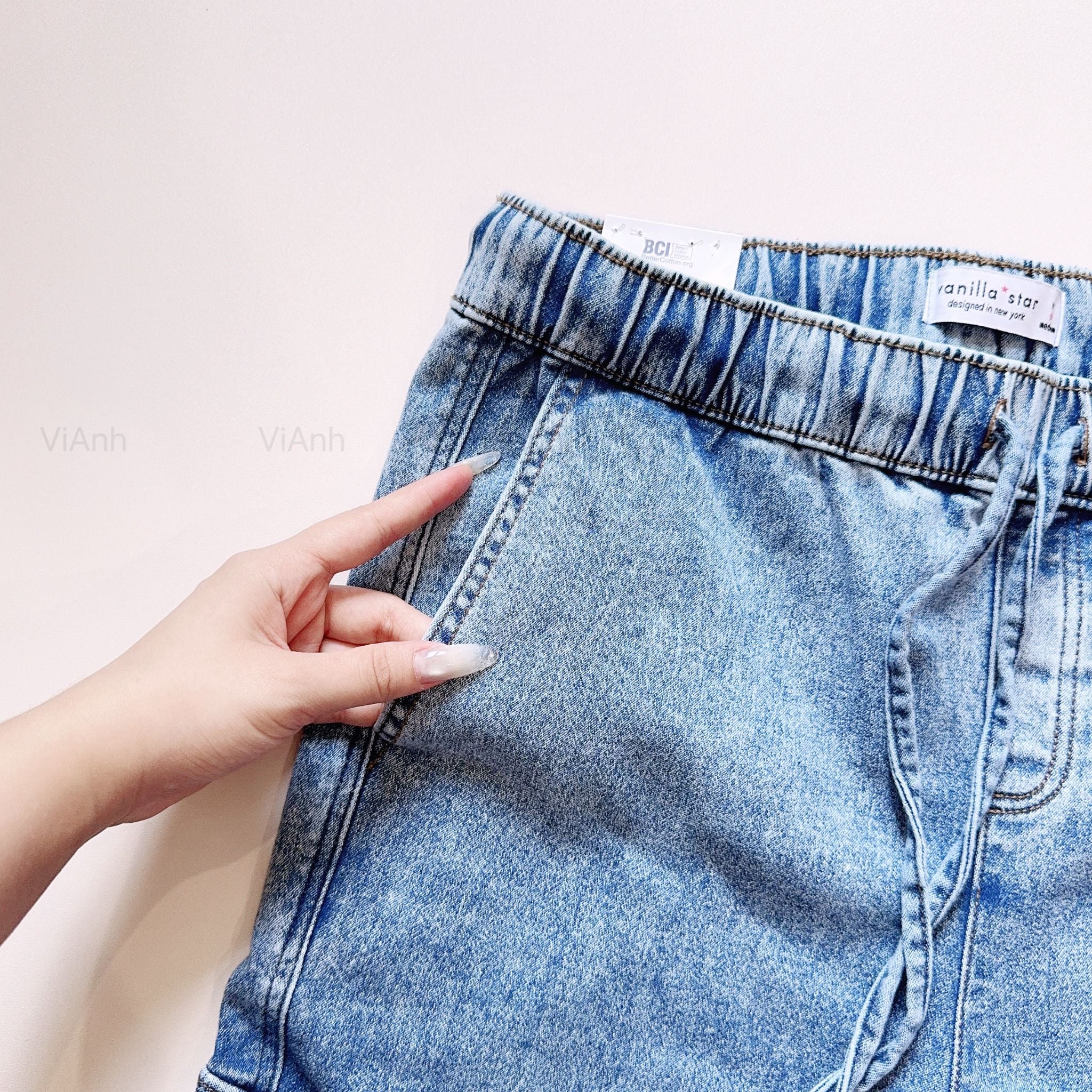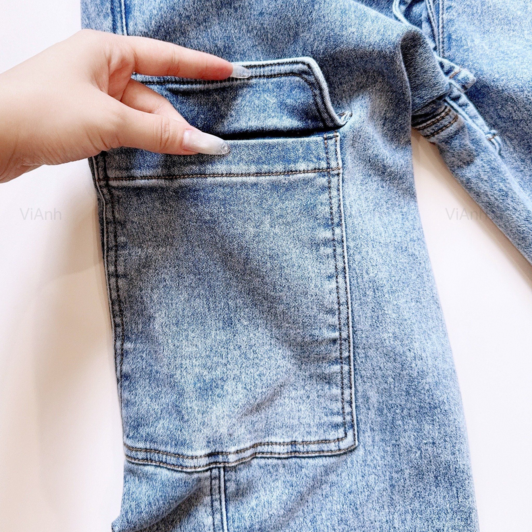 Quần bò B57 cạp chun túi hộp style Âu Mỹ A6757 / XANH