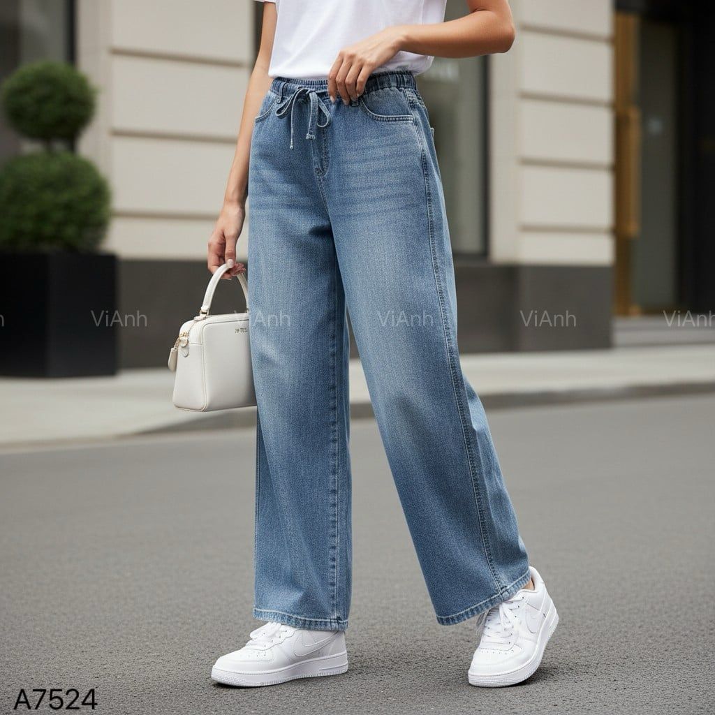 Quần bò jeans ống suông thêu túi sau style US UK / XANH