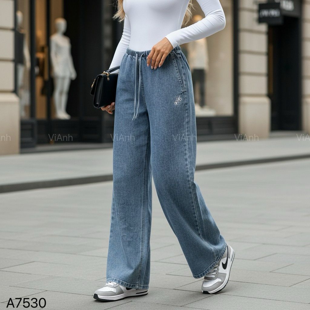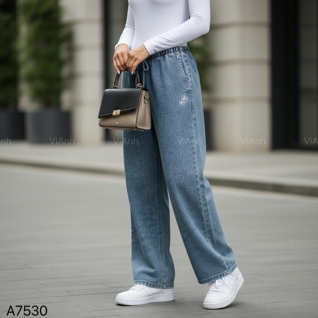 Quần bò jeans thêu hoa hồng style US UK / Size: S / XANH