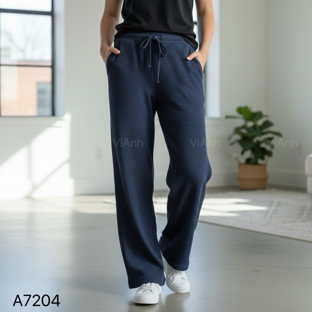 Quần nỉ cotton công nghệ vải mới – chất dệt thông khí dày mịn mà mềm cực, thoáng khí, phom suông thanh lịch.