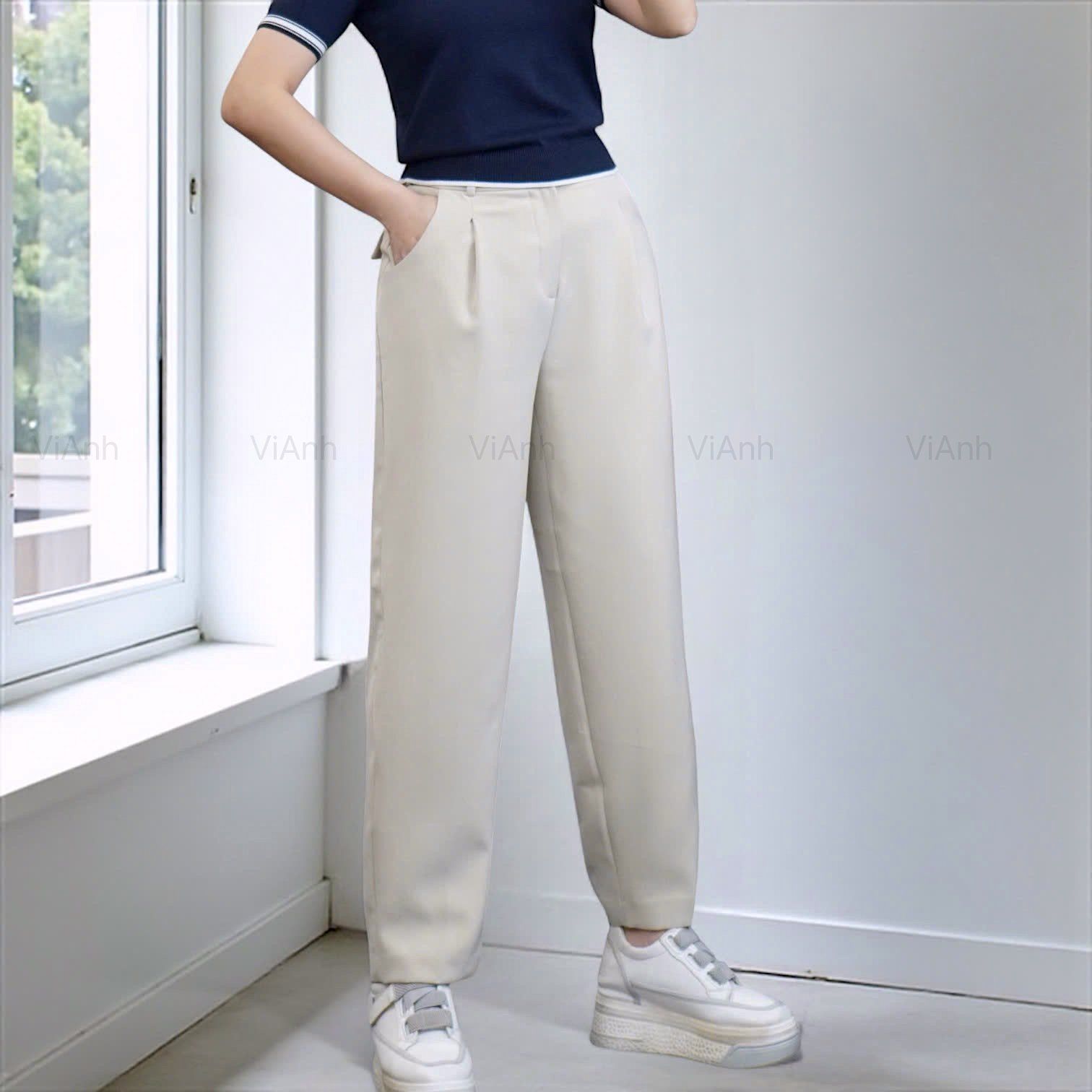 Quần dài ống suông style Âu Mỹ / D60 xanh rêu - D61 trắng - D62 đen - D63 be