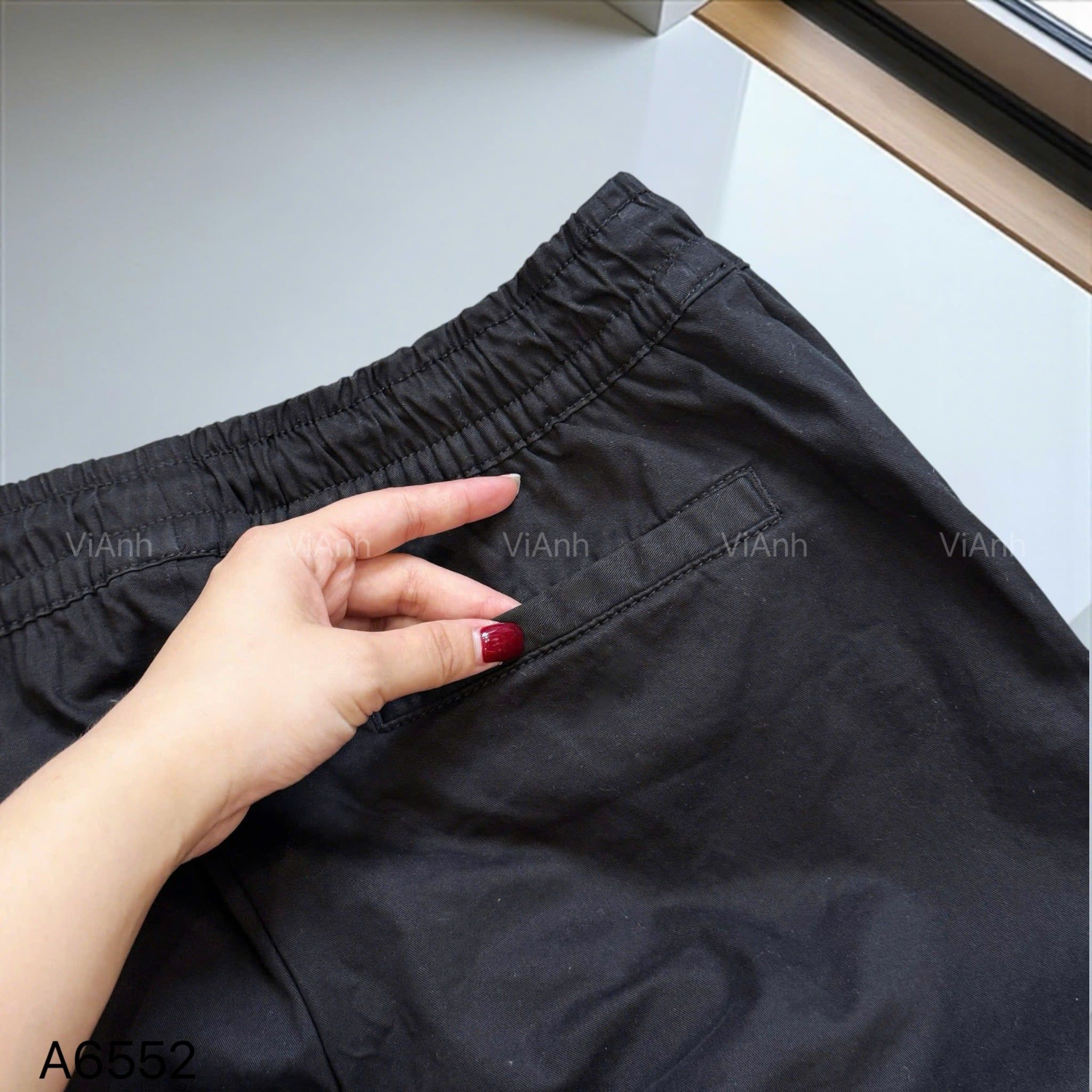 Quần D52 jeans cạp chun bo gấu dáng vừa style Âu A6552 / ĐEN