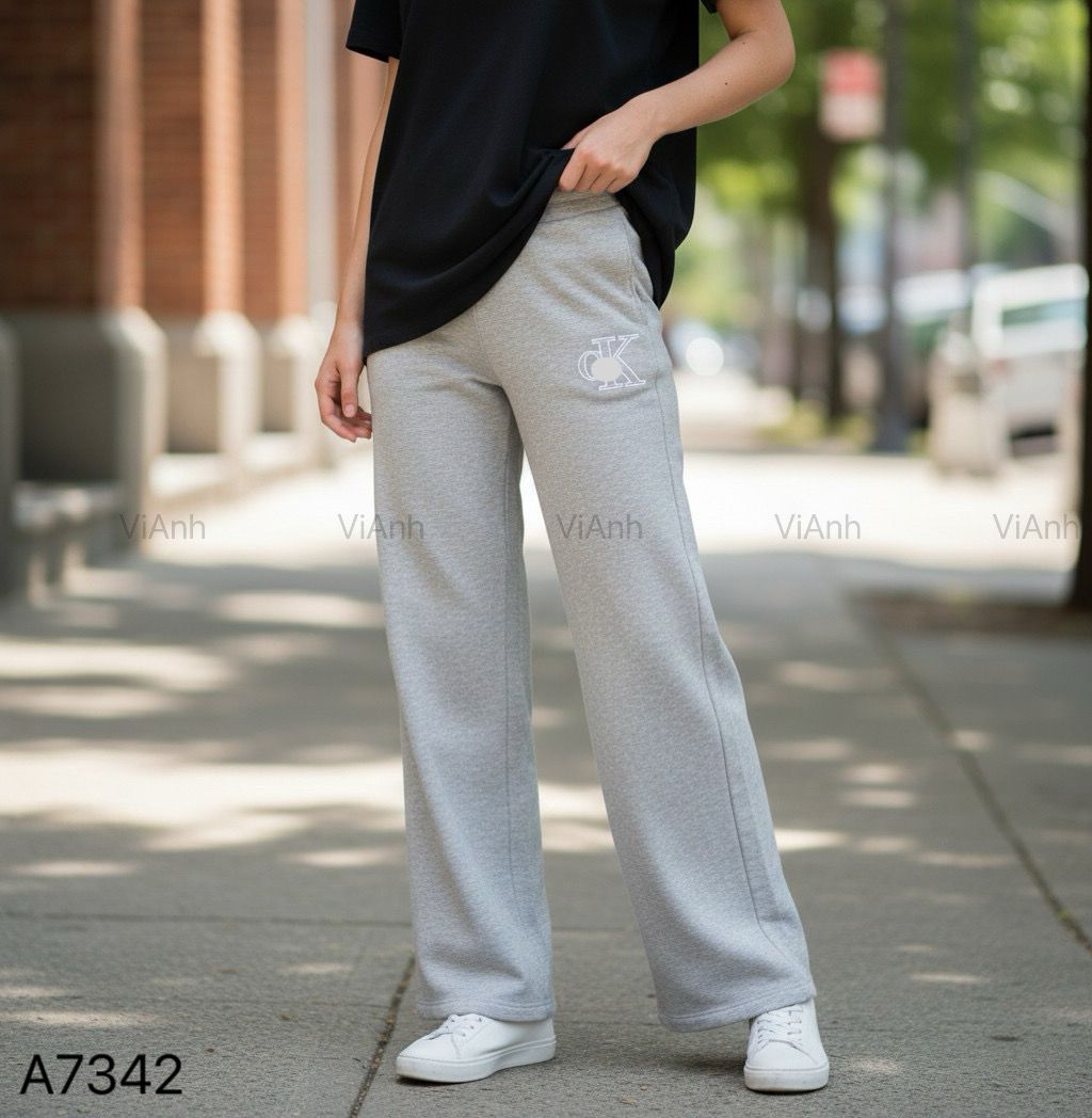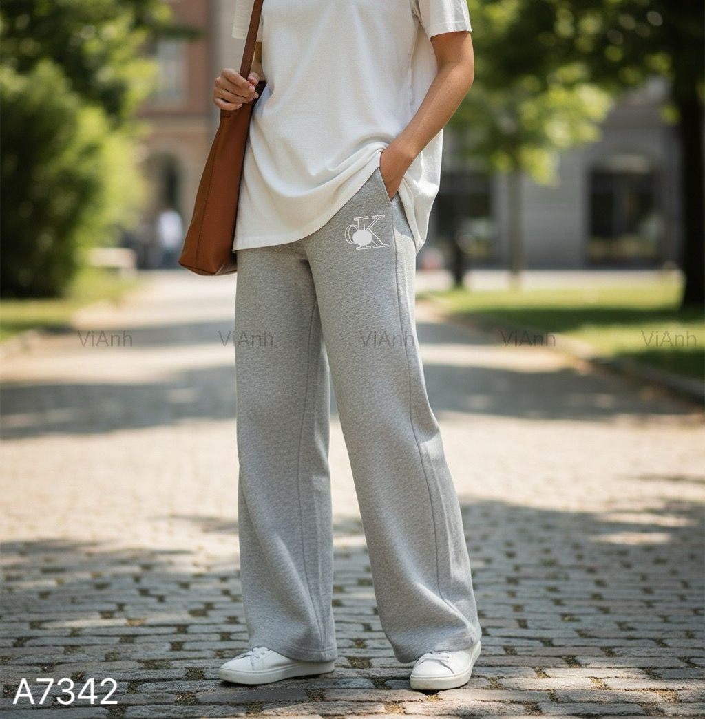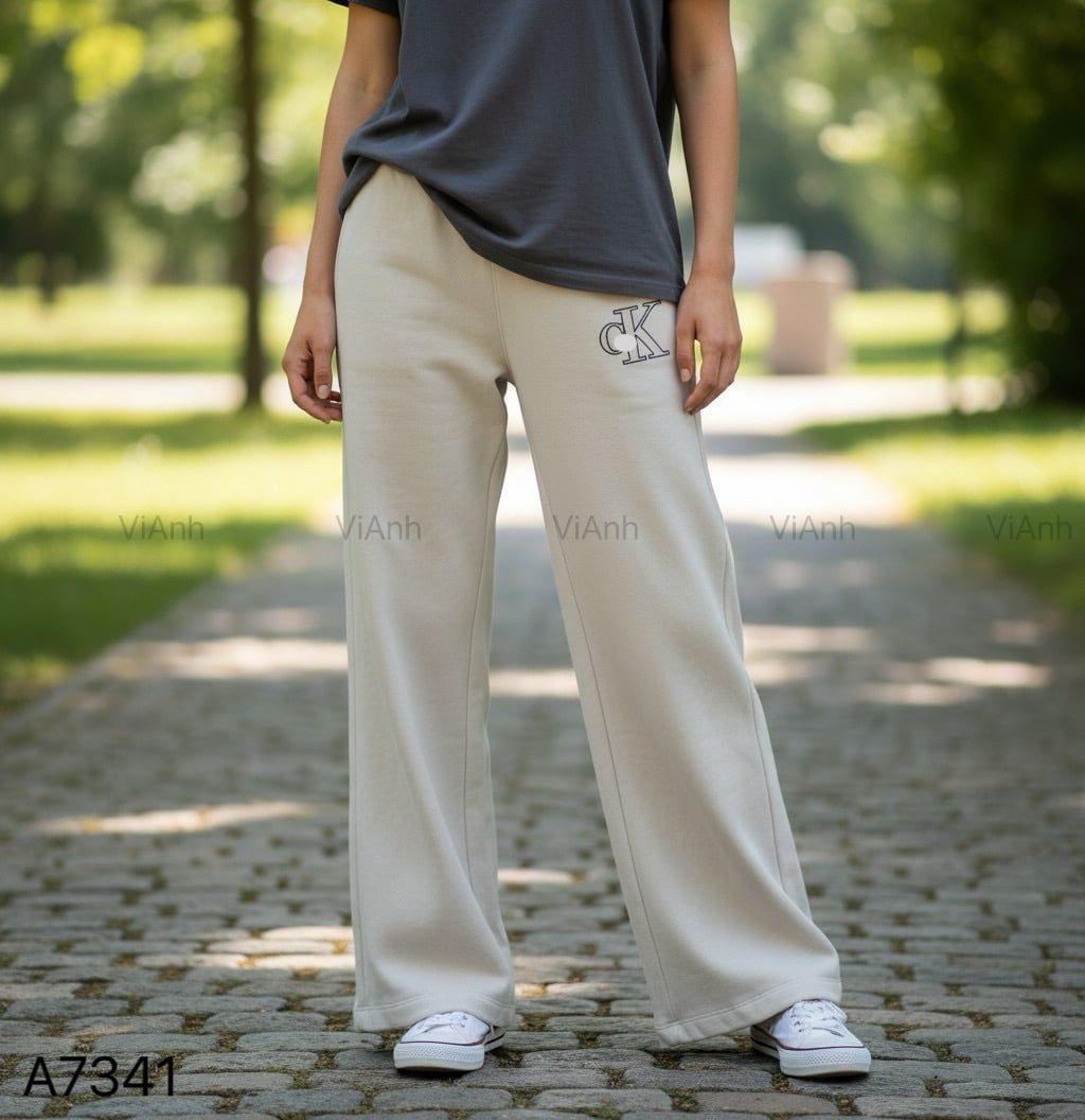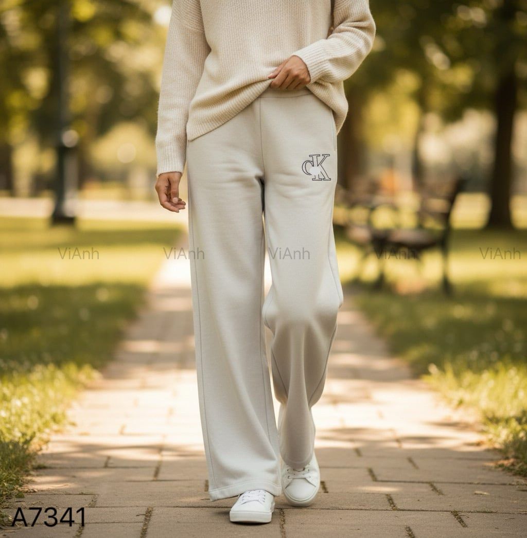 Quần nỉ ống rộng in chữ dập nổi style US UK / TRẮNG KEM - XÁM