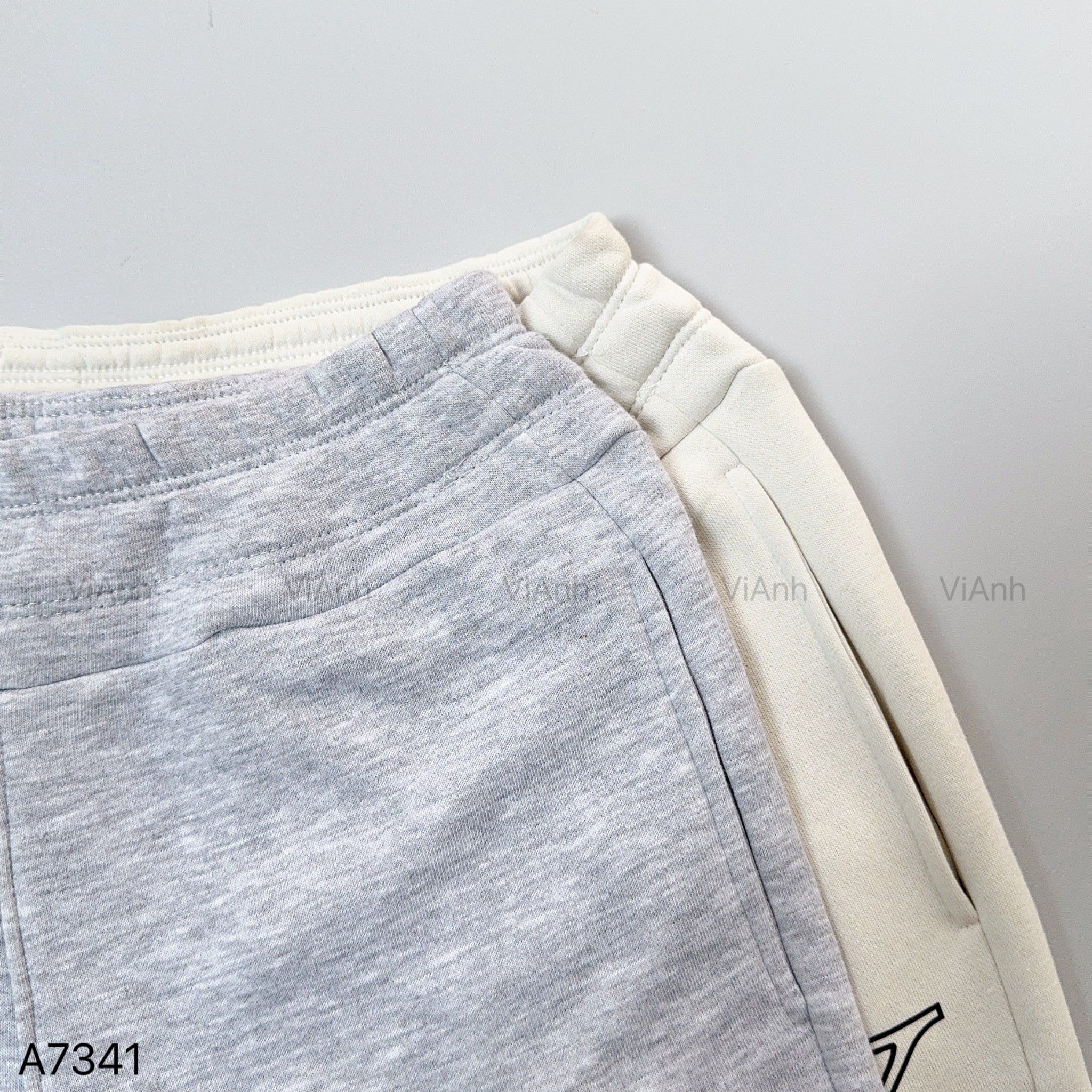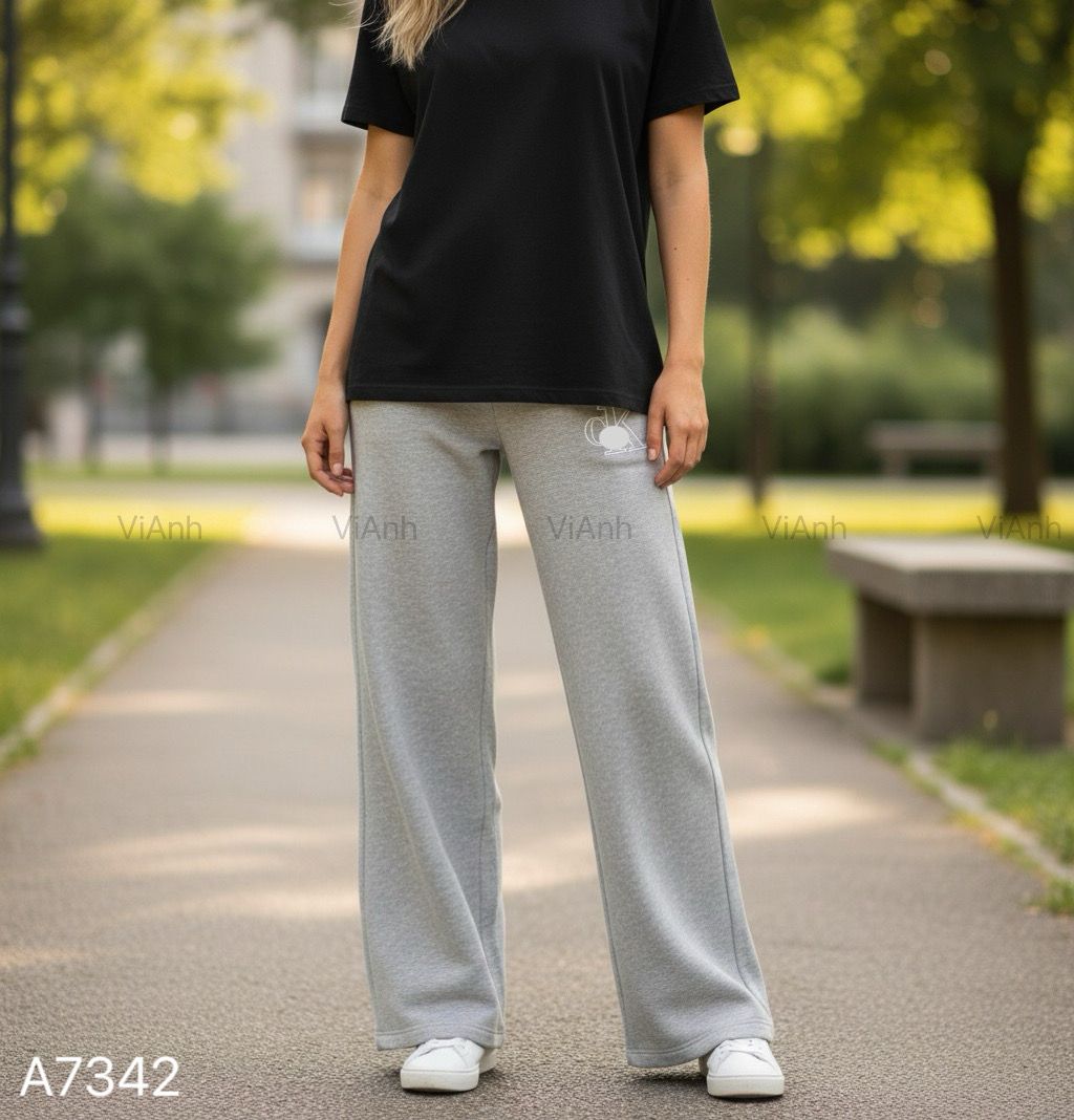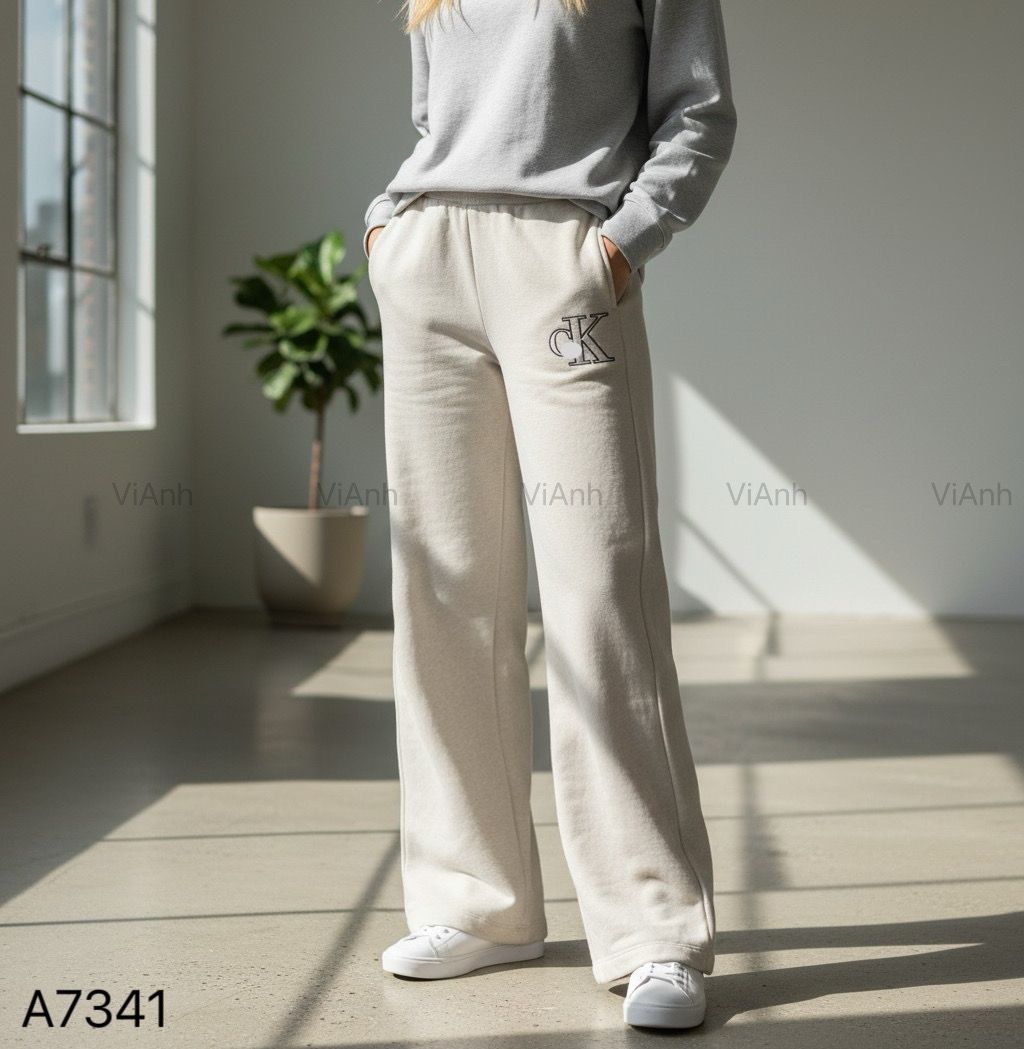 Quần nỉ ống rộng in chữ dập nổi style US UK / TRẮNG KEM - XÁM