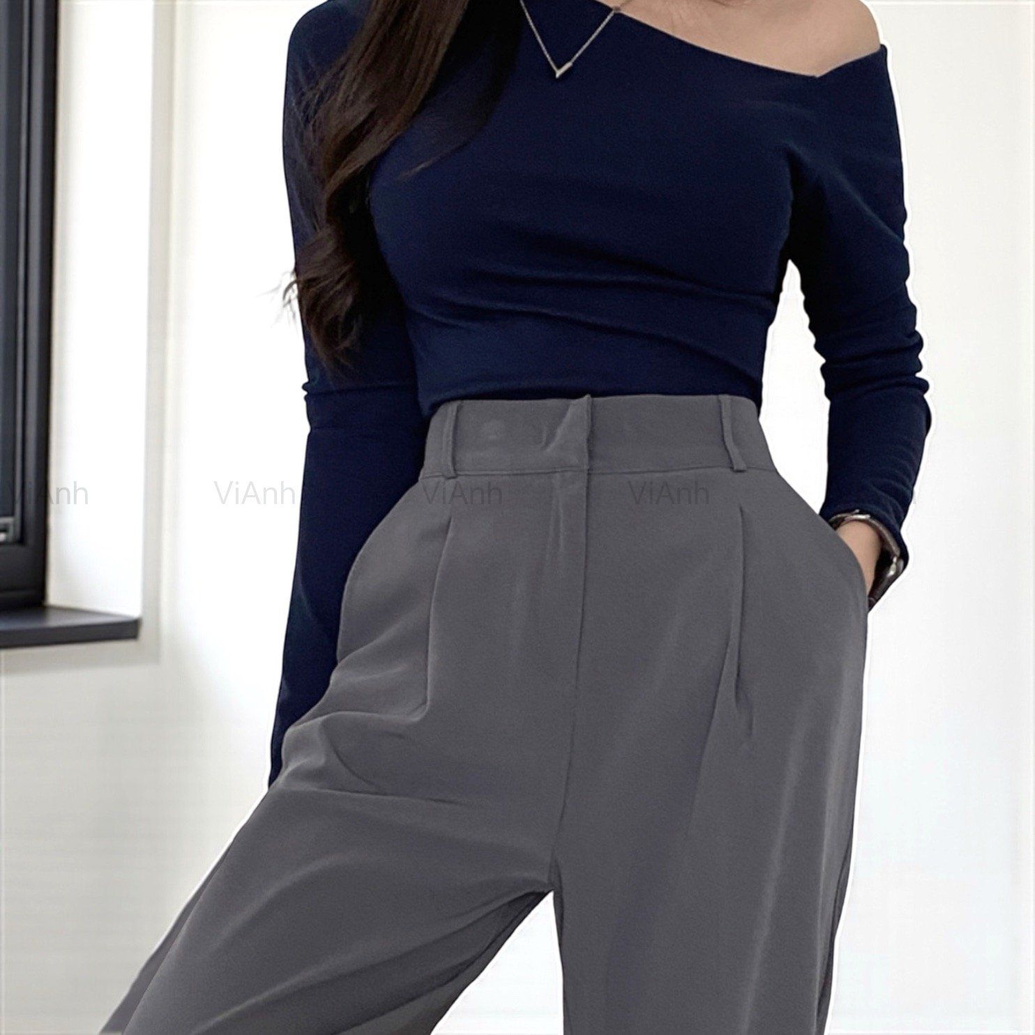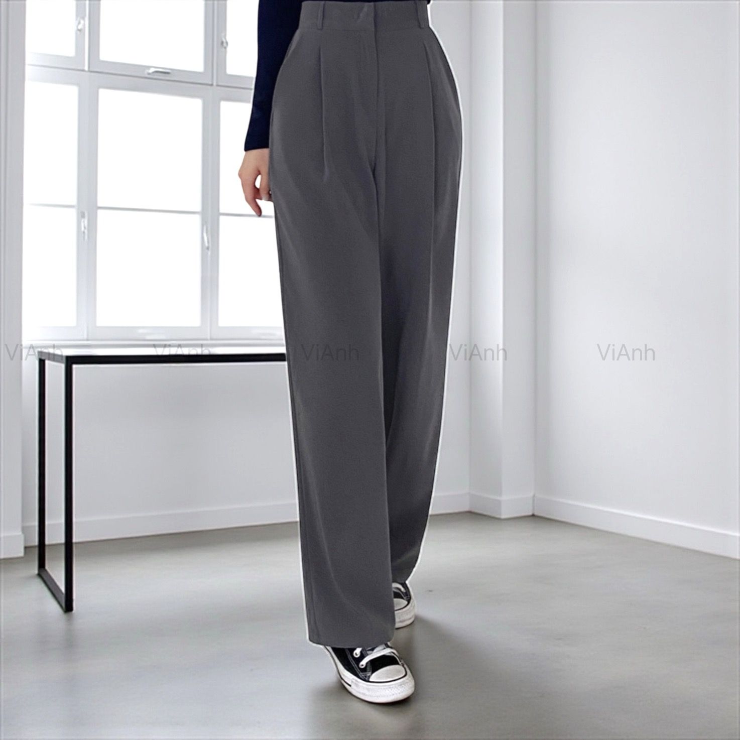 Quần E119 ống rộng dáng dài kiểu Hàn A6308 / XANH XÁM