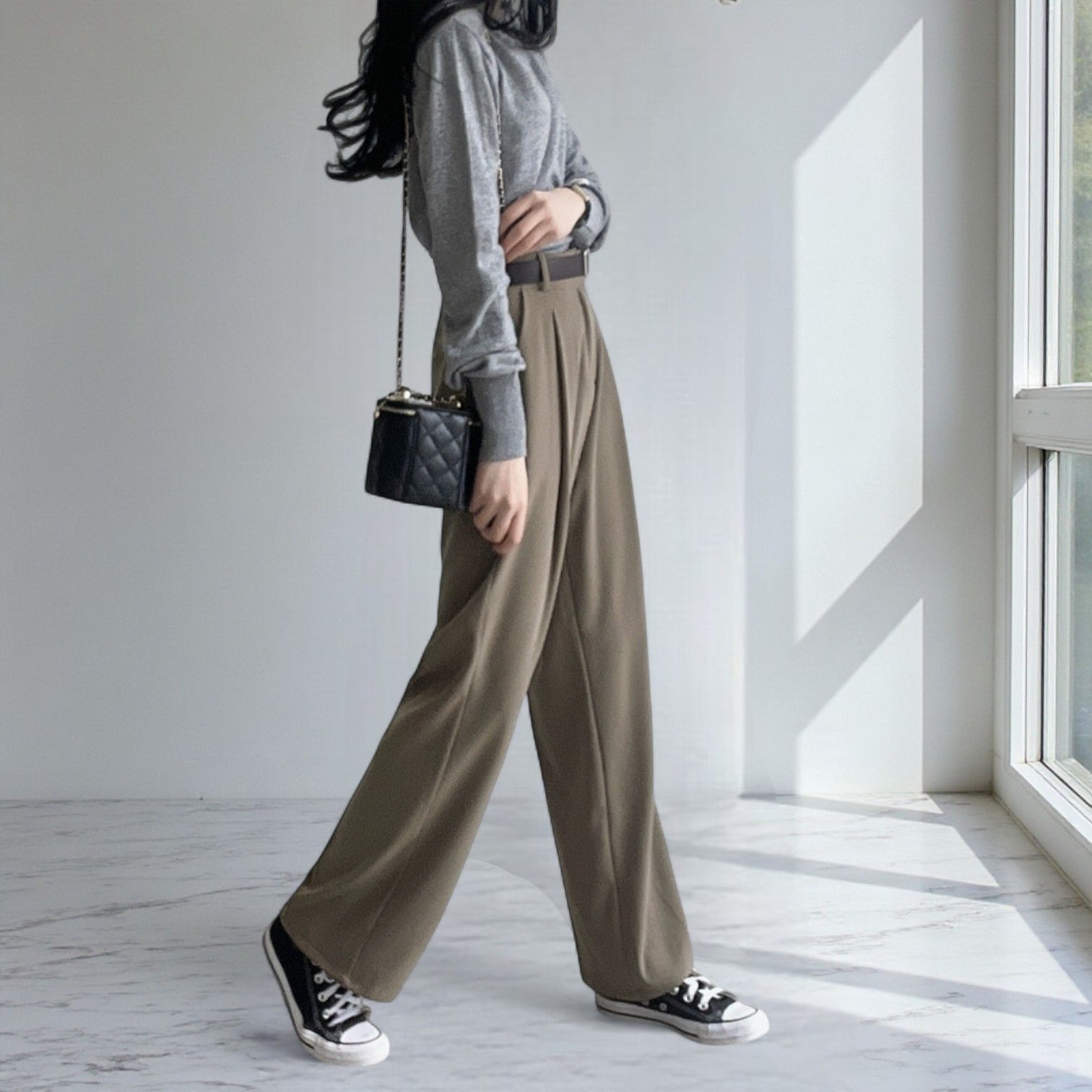 Quần H5 ống rộng dáng vừa kiểu Hàn A6305 / NÂU