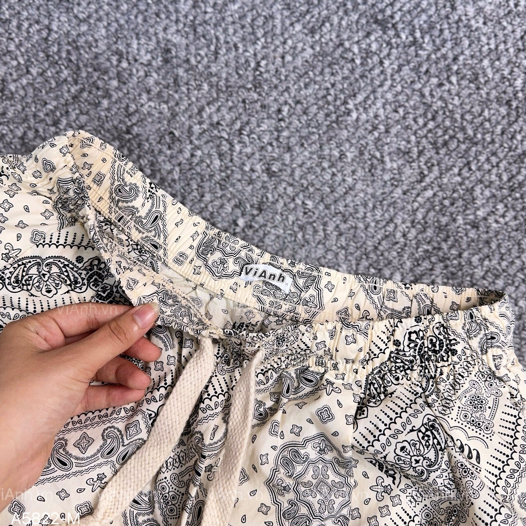 Quần short cạp chun hoạ tiết xuất Âu / TRẮNG PHỐI ĐEN Q22