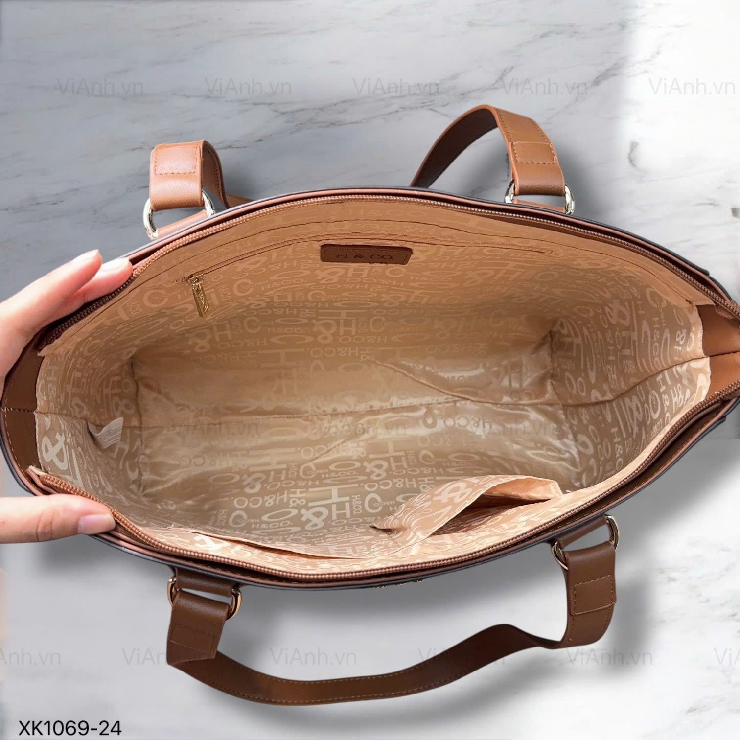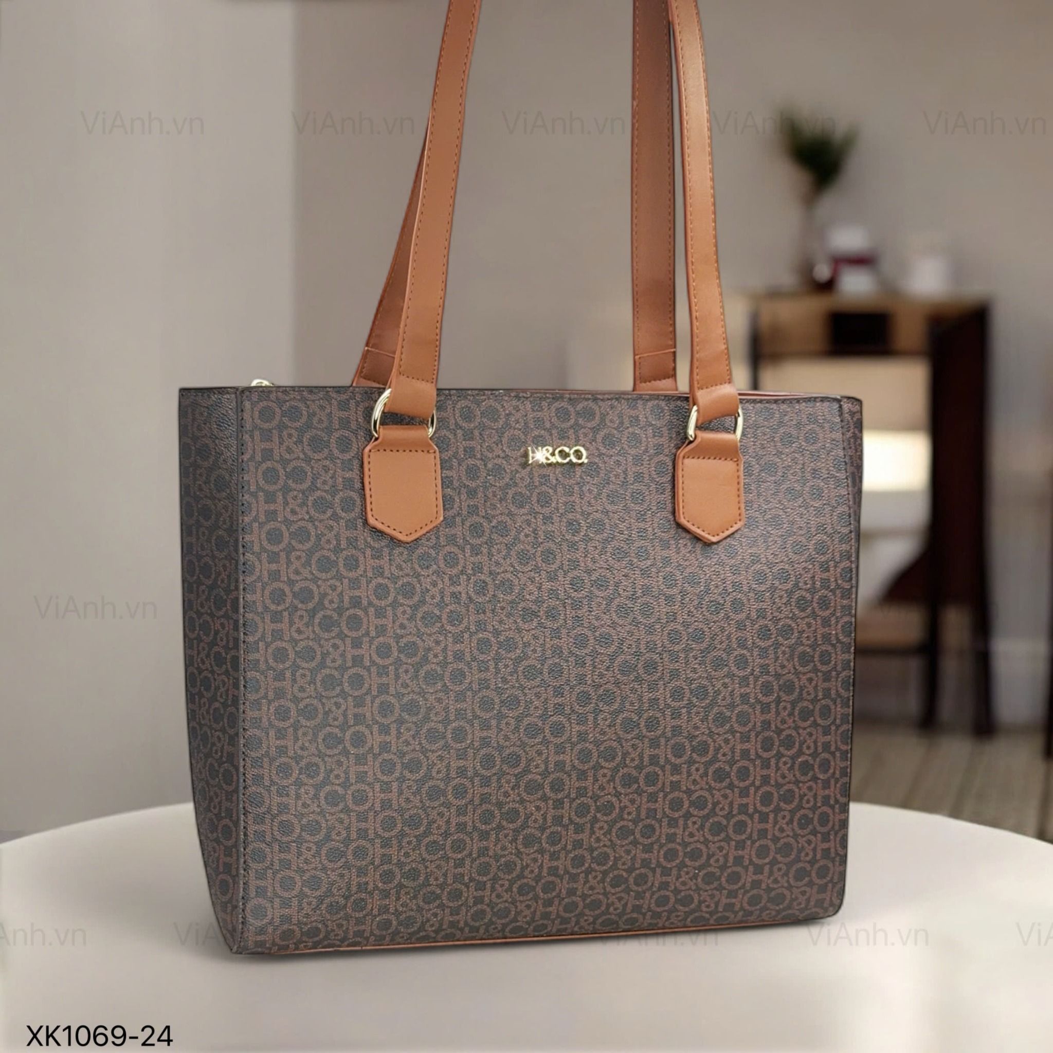 Túi Totebag XK1069 phom cánh dơi khoác vai da vân hoạ tiết chữ H69 / m39 đ35 c29 / NÂU