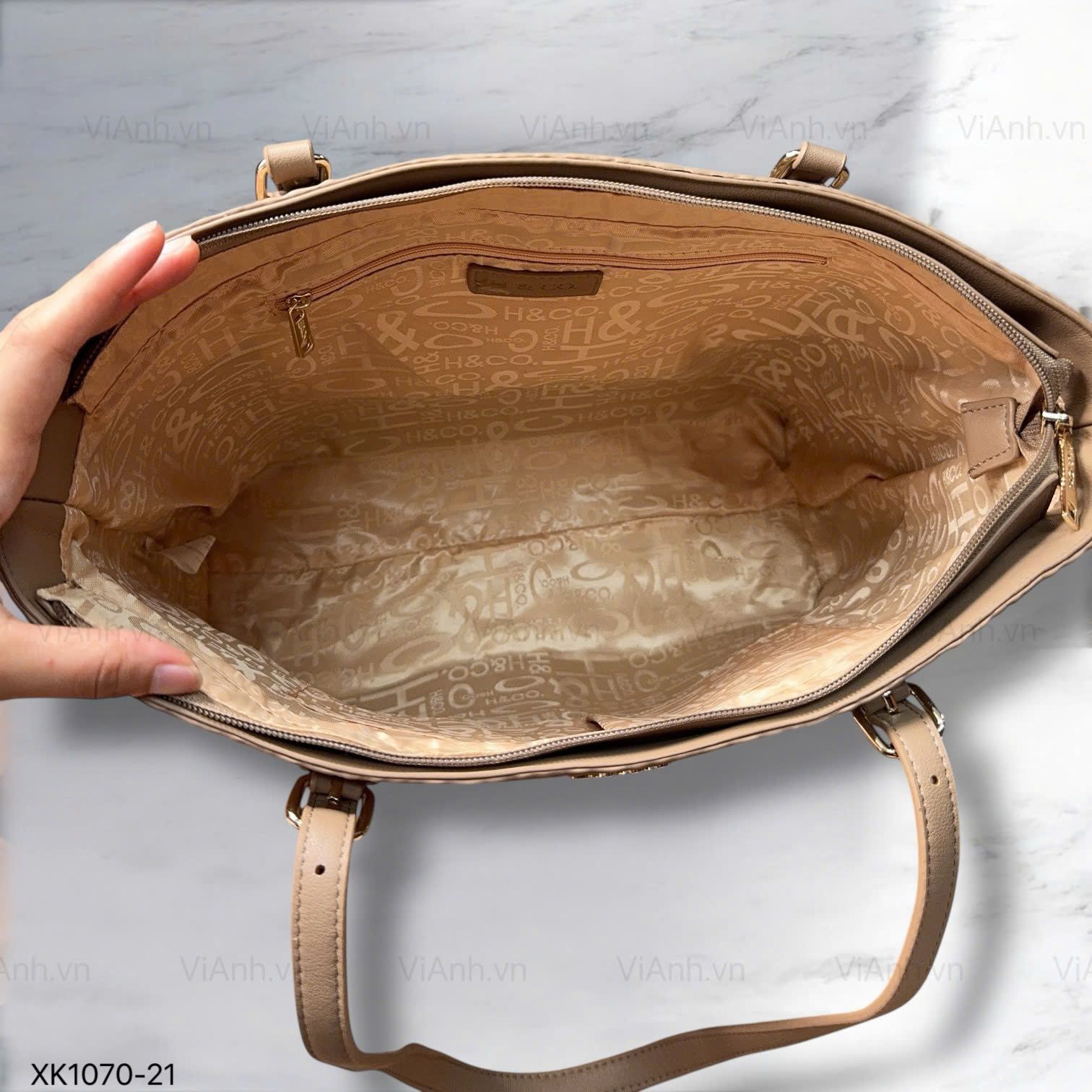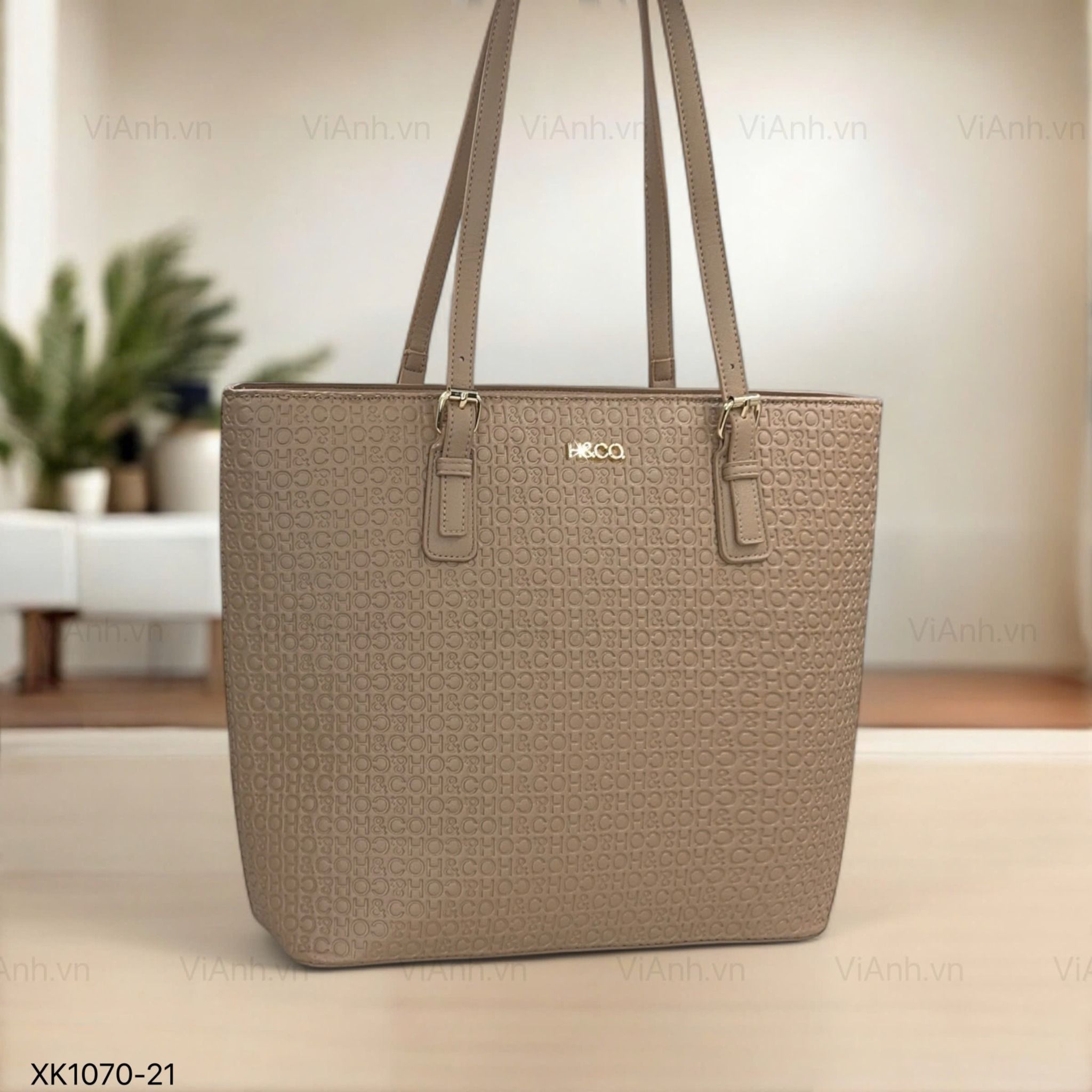 Túi Totebag XK1070 phom cánh dơi khoác vai hoạ tiết chữ dập chìm H70 / m40 đ33 c31 / BE