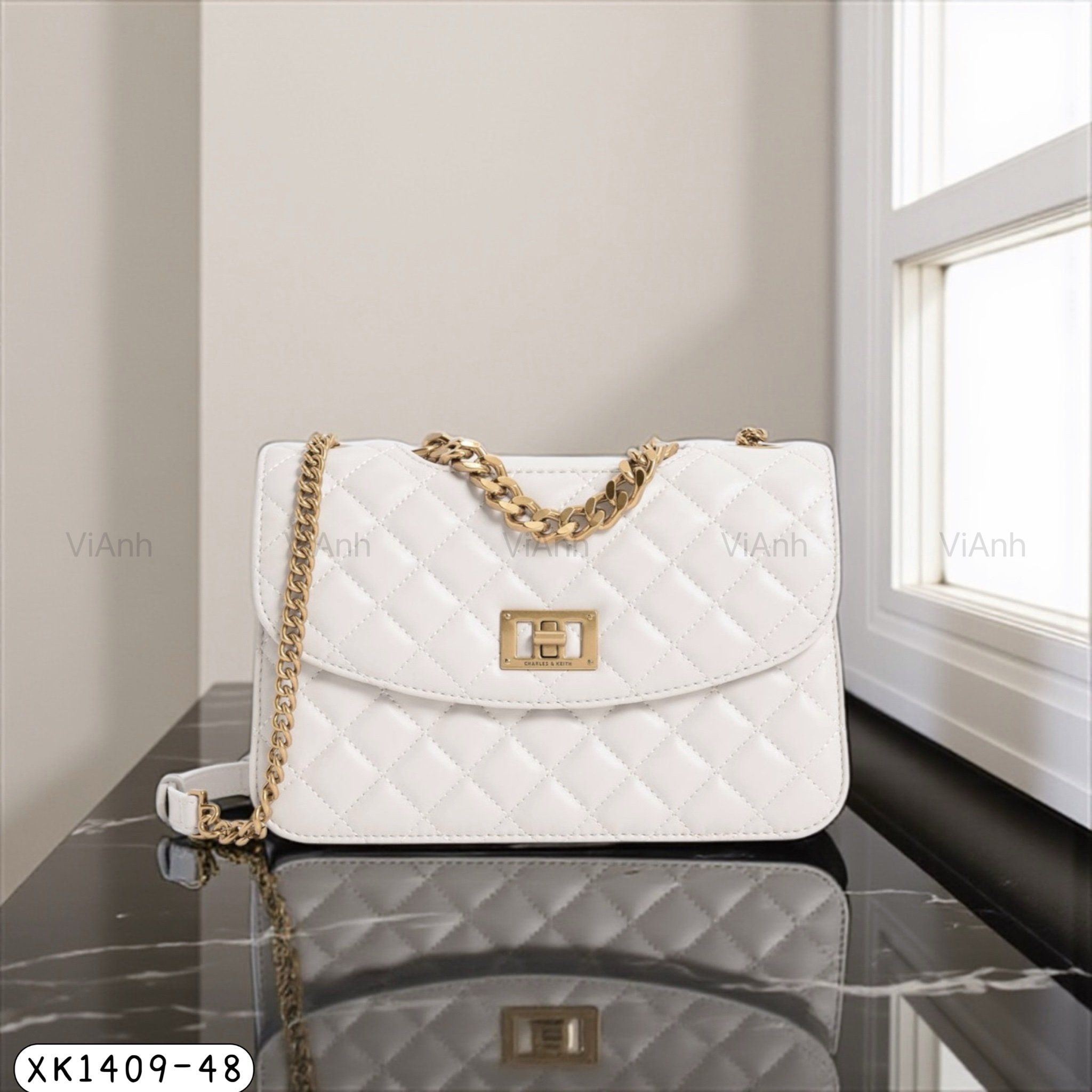 Túi xách C/K chữ nhật xách tay CĐC / 22x15 / D9 đen - T9 trắng xám
