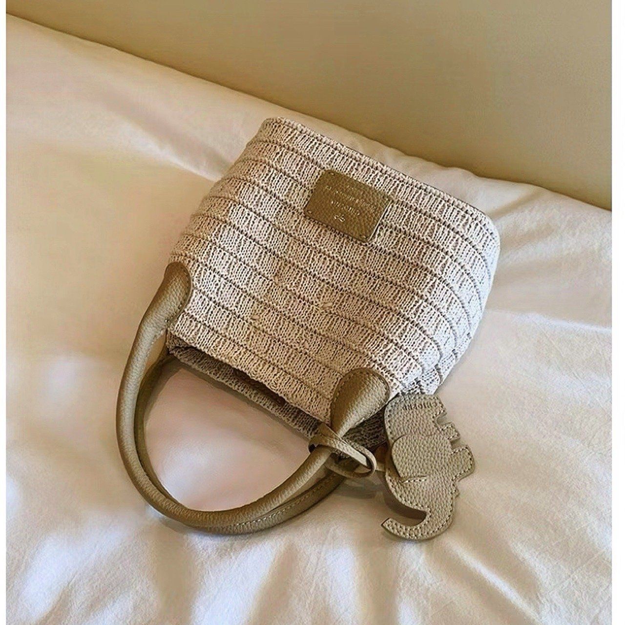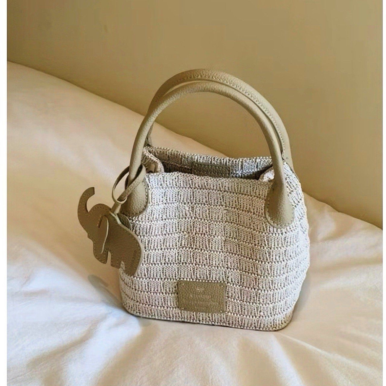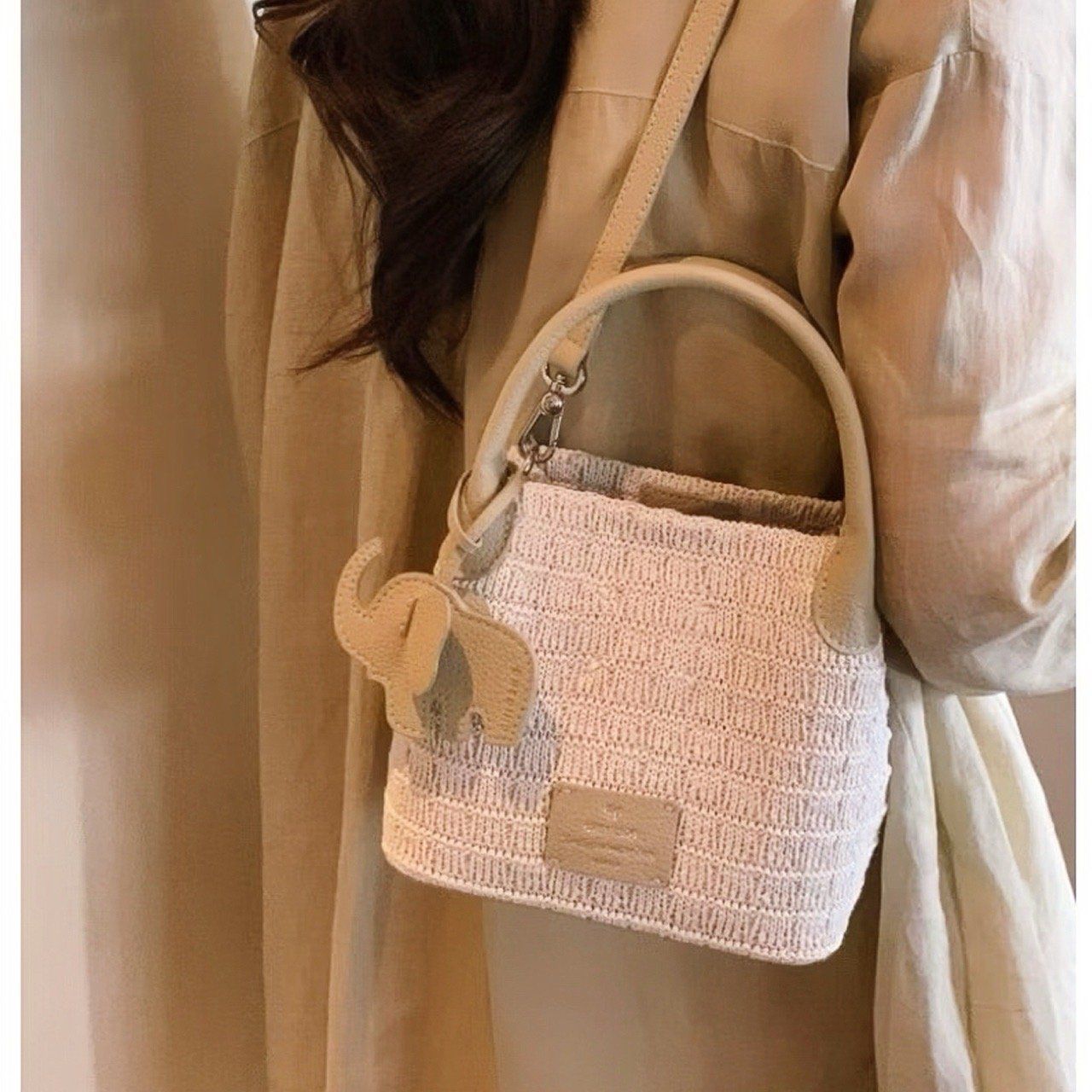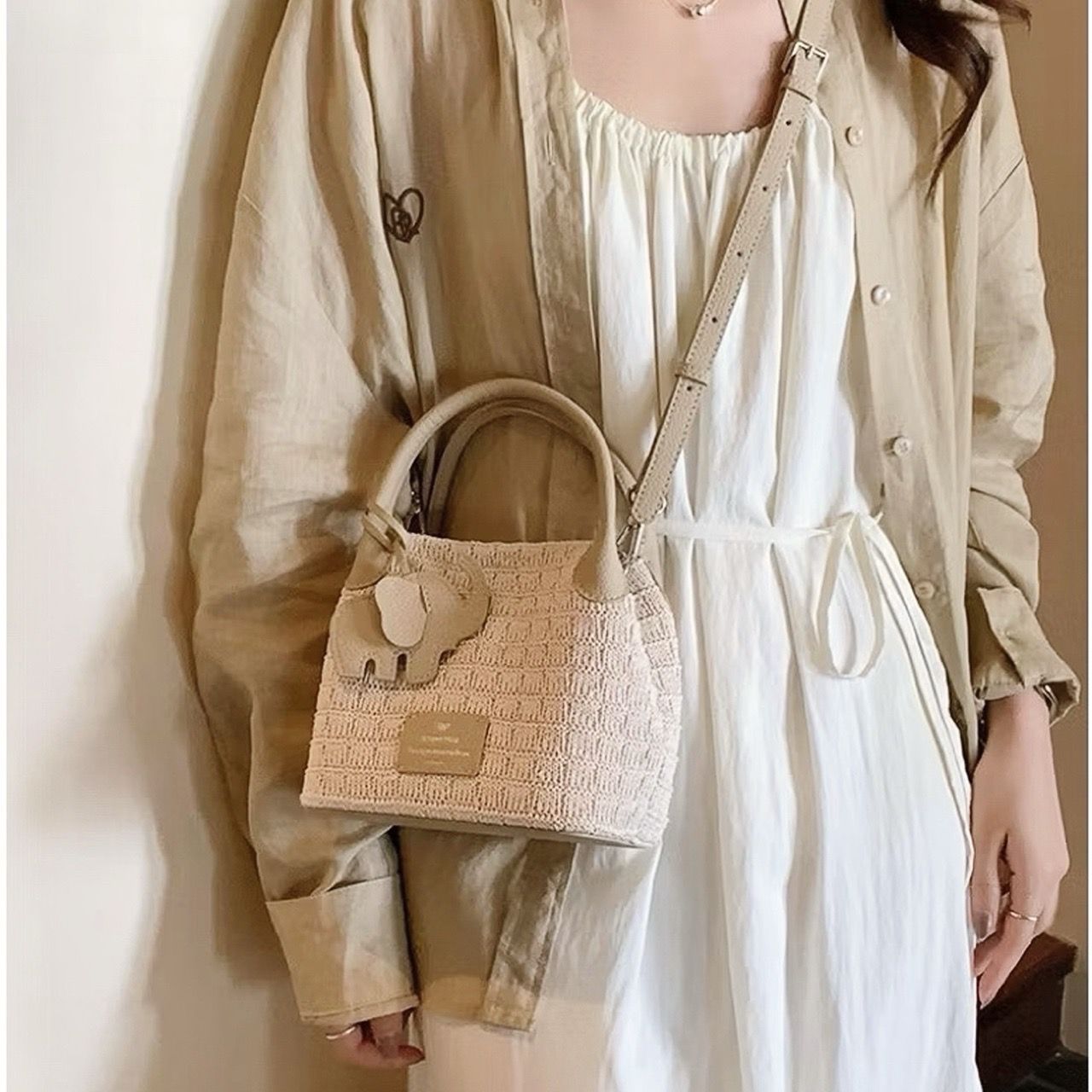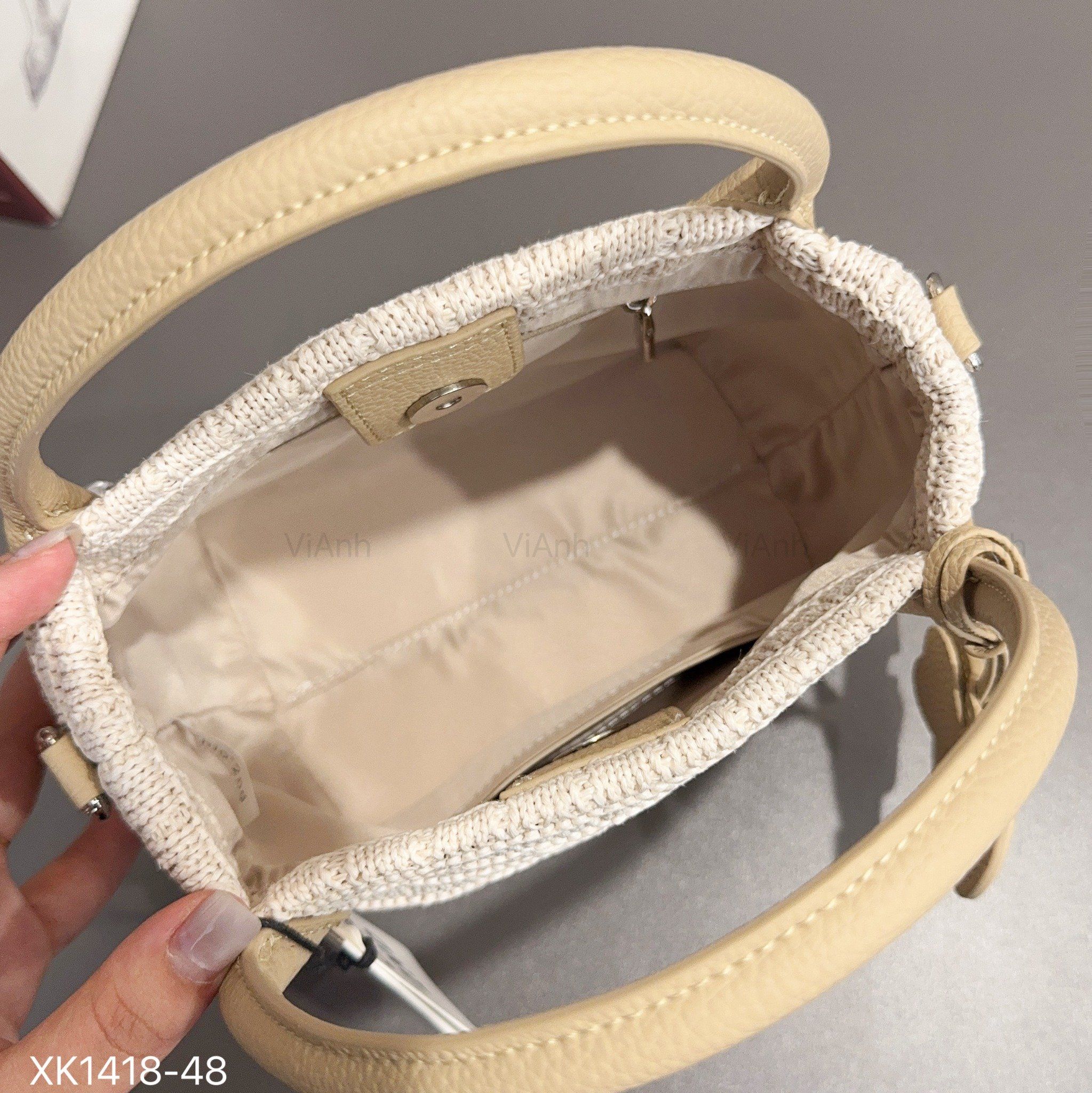 Dư xịn nè, Size 18x16cm, sợi móc tổng hợp phối da chuẩn vibe vintage, sang nhẹ nhàng mà nhìn cuốn lắm nhen.