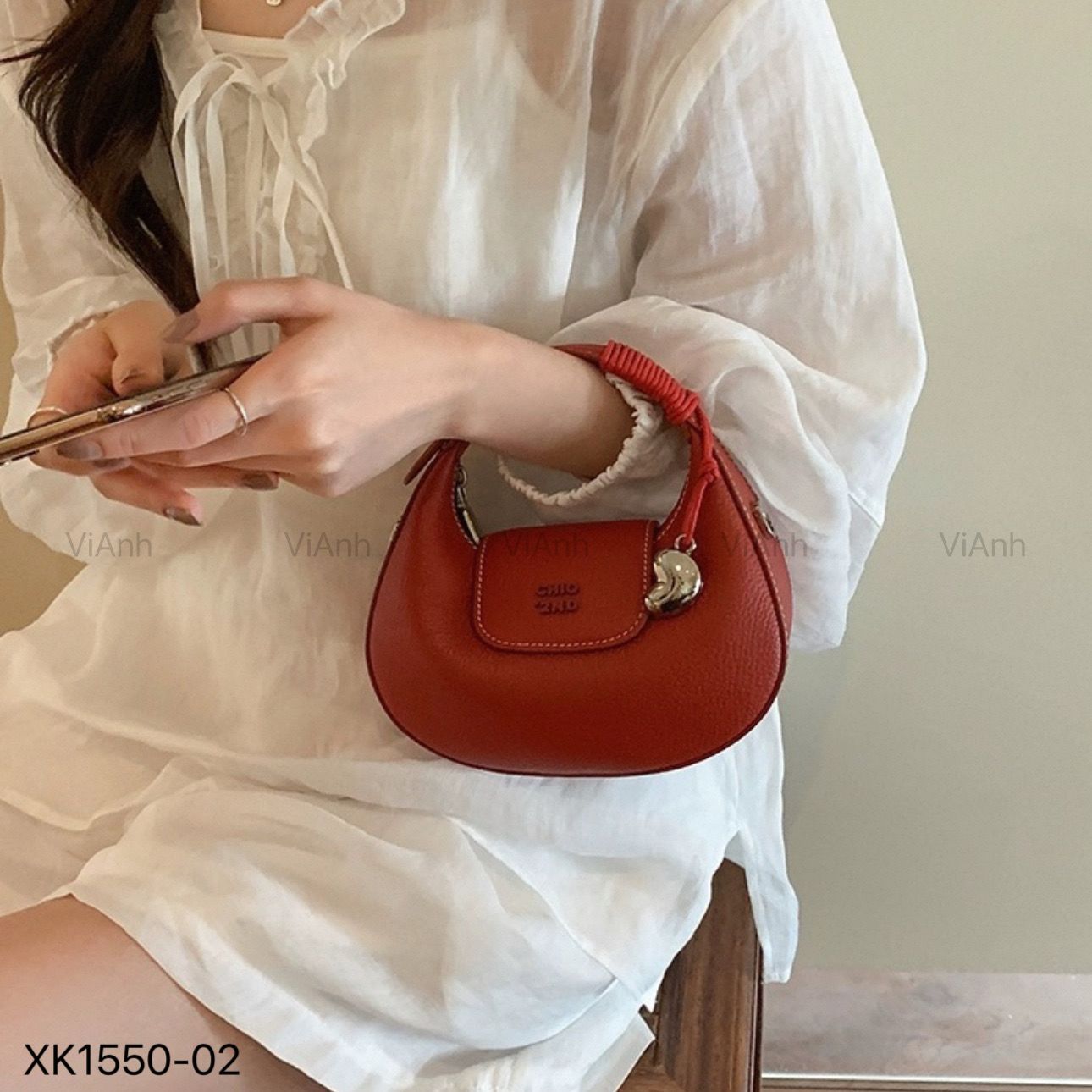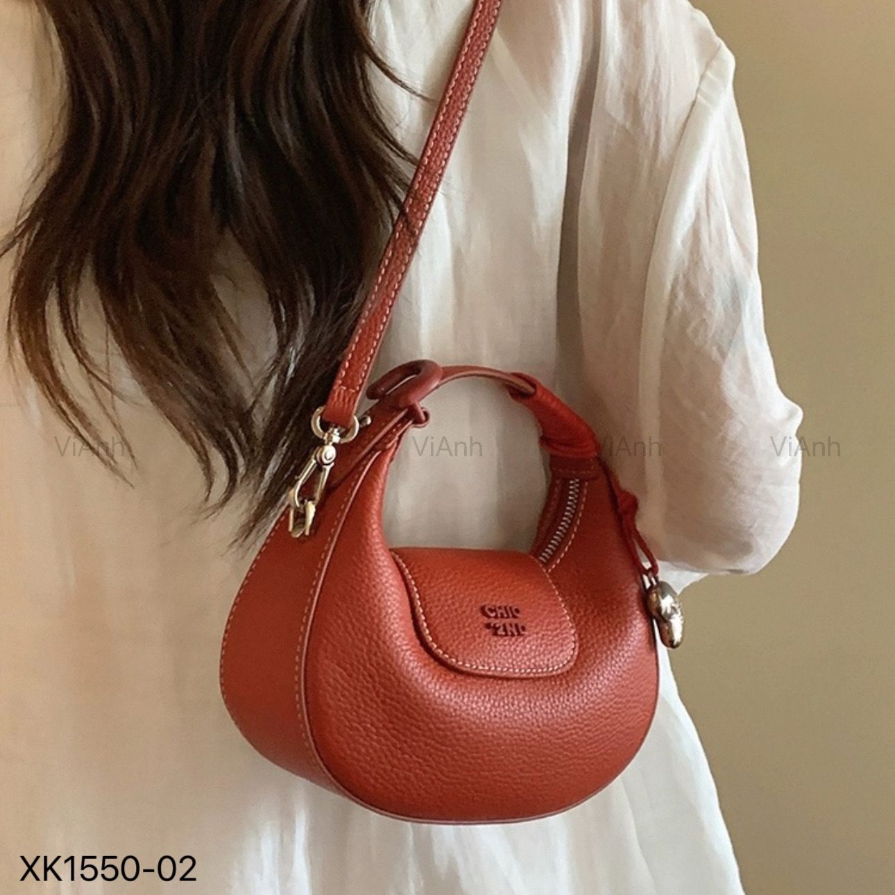 Túi xách Chio'2nd phom bầu xách tay CĐC CHR / 19x12 ( Đen D50 - Đỏ cam C50 - Vàng Kem V50 )