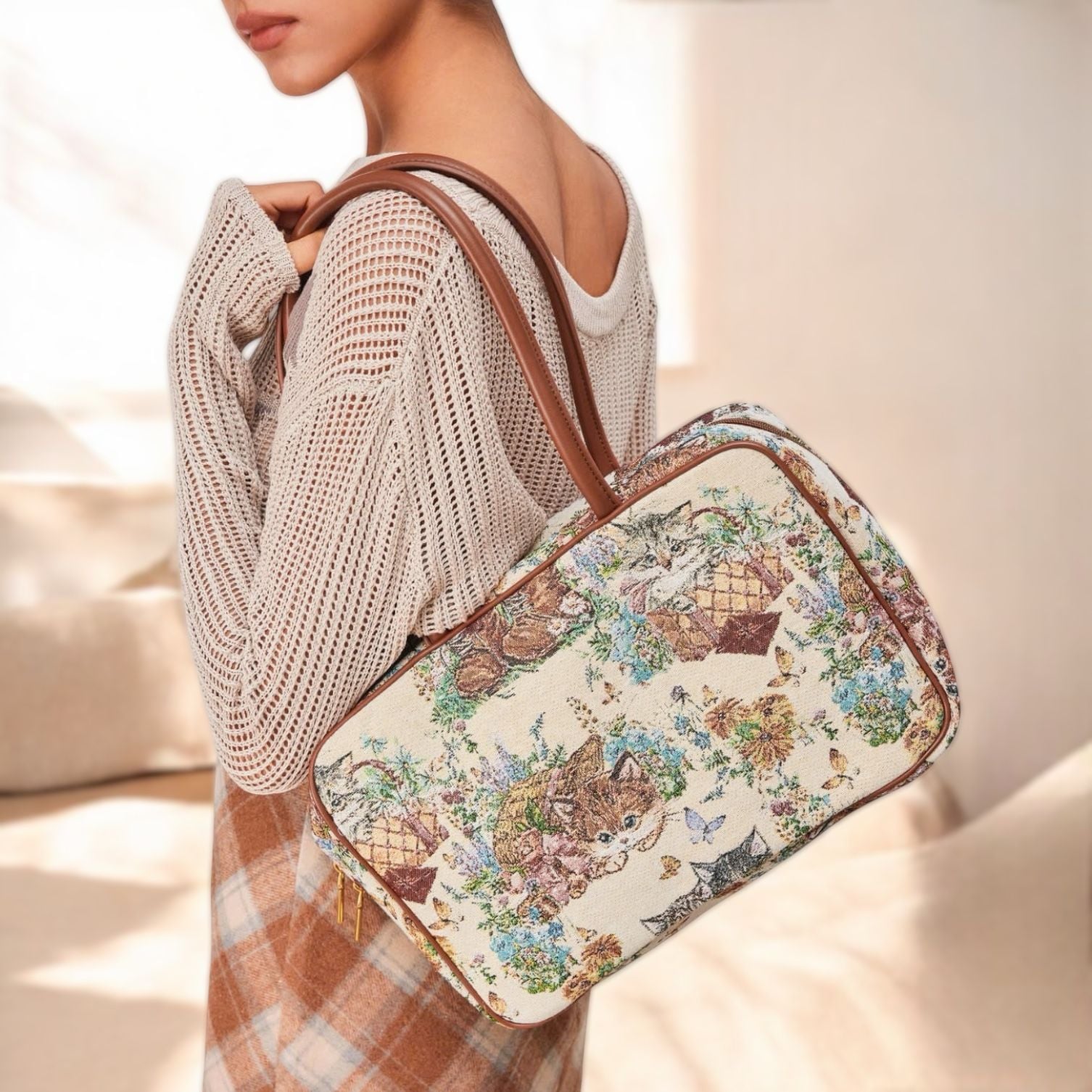 Chất Liệu: Canvat thêu hoạ tiết, Lót dày dặn, khoá xin mờ hiện đại