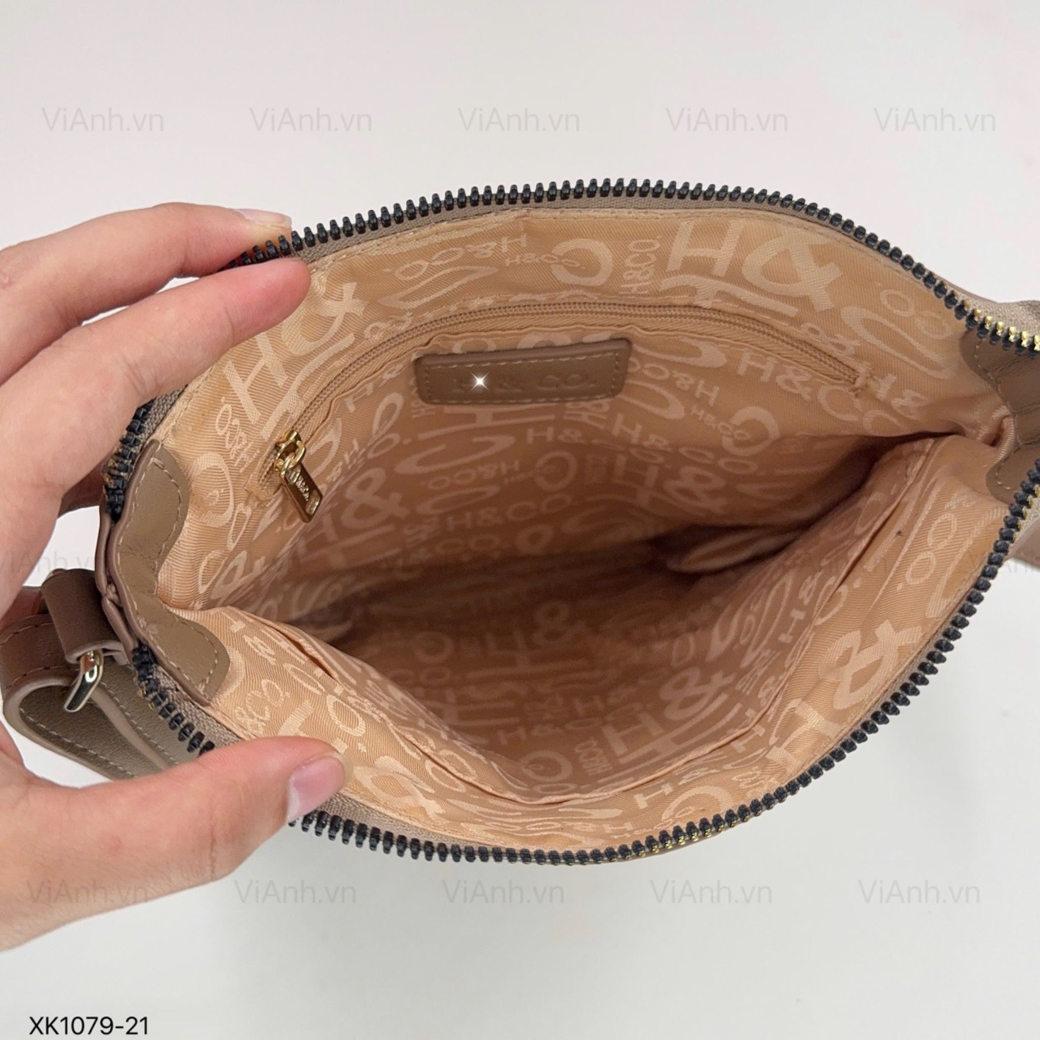 Túi xách XK1079 chữ nhật đeo chéo hoạ tiết chữ nổi H79 / 21x24 / BE