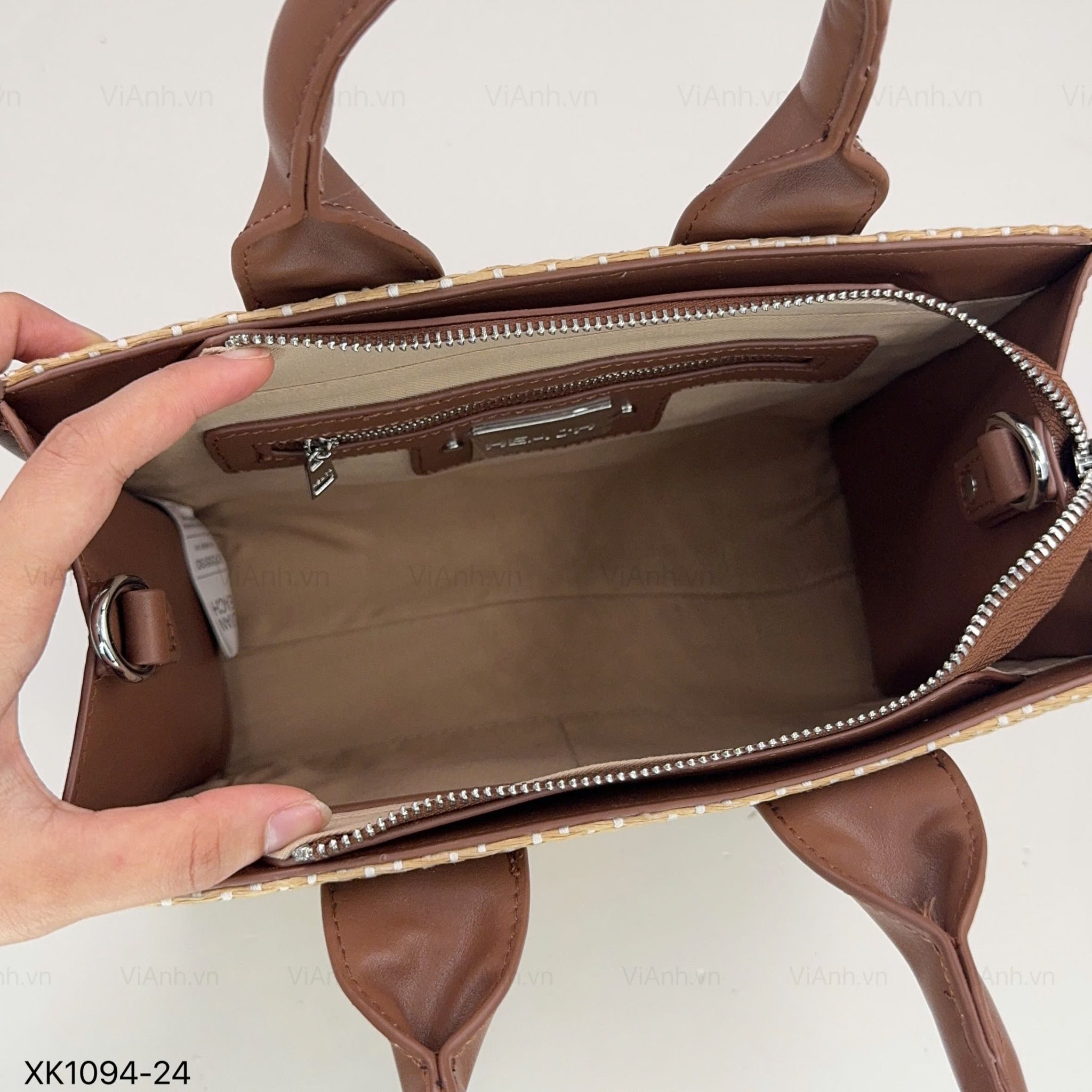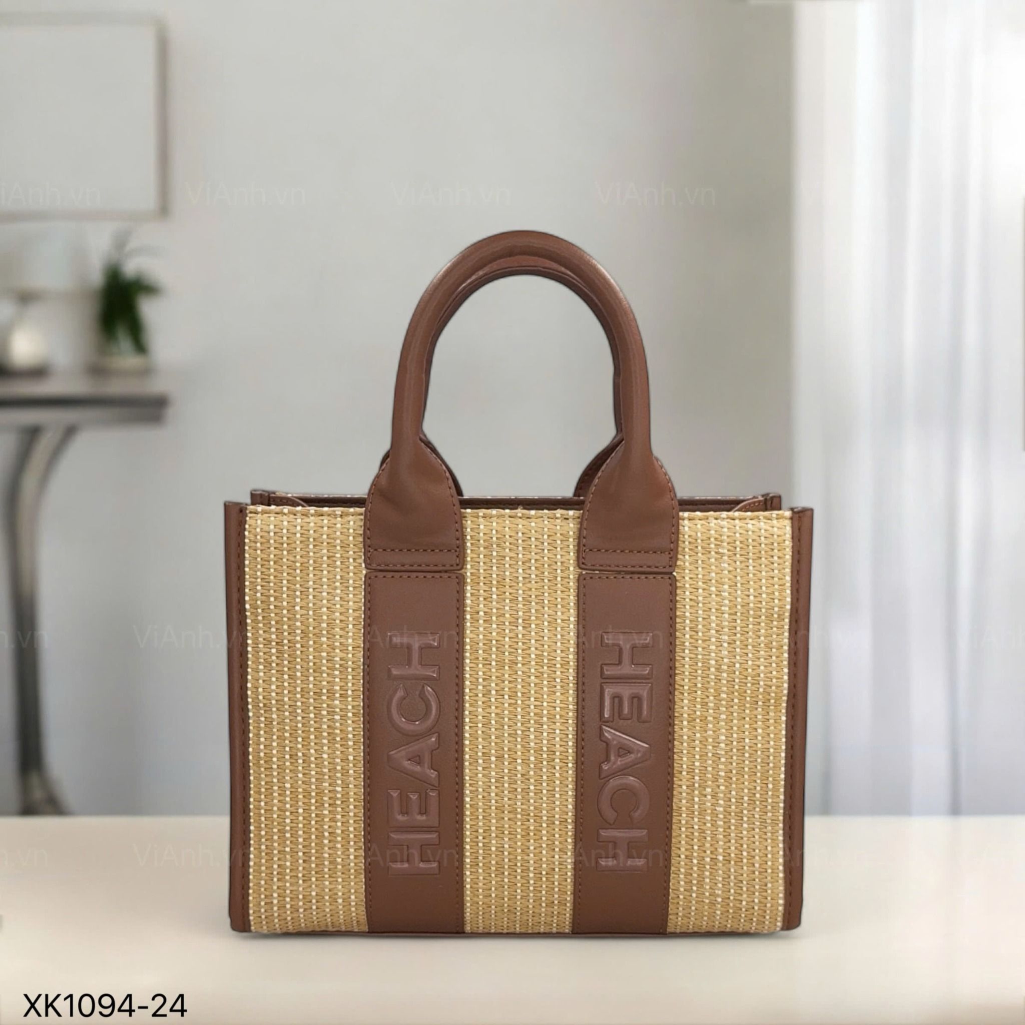 Túi xách XK1094 chữ nhật xách tay cói phối da CĐC H94 / 26x20 / NÂU PHỐI VÀNG