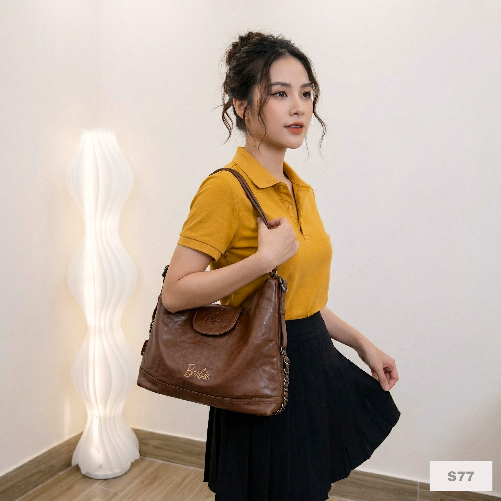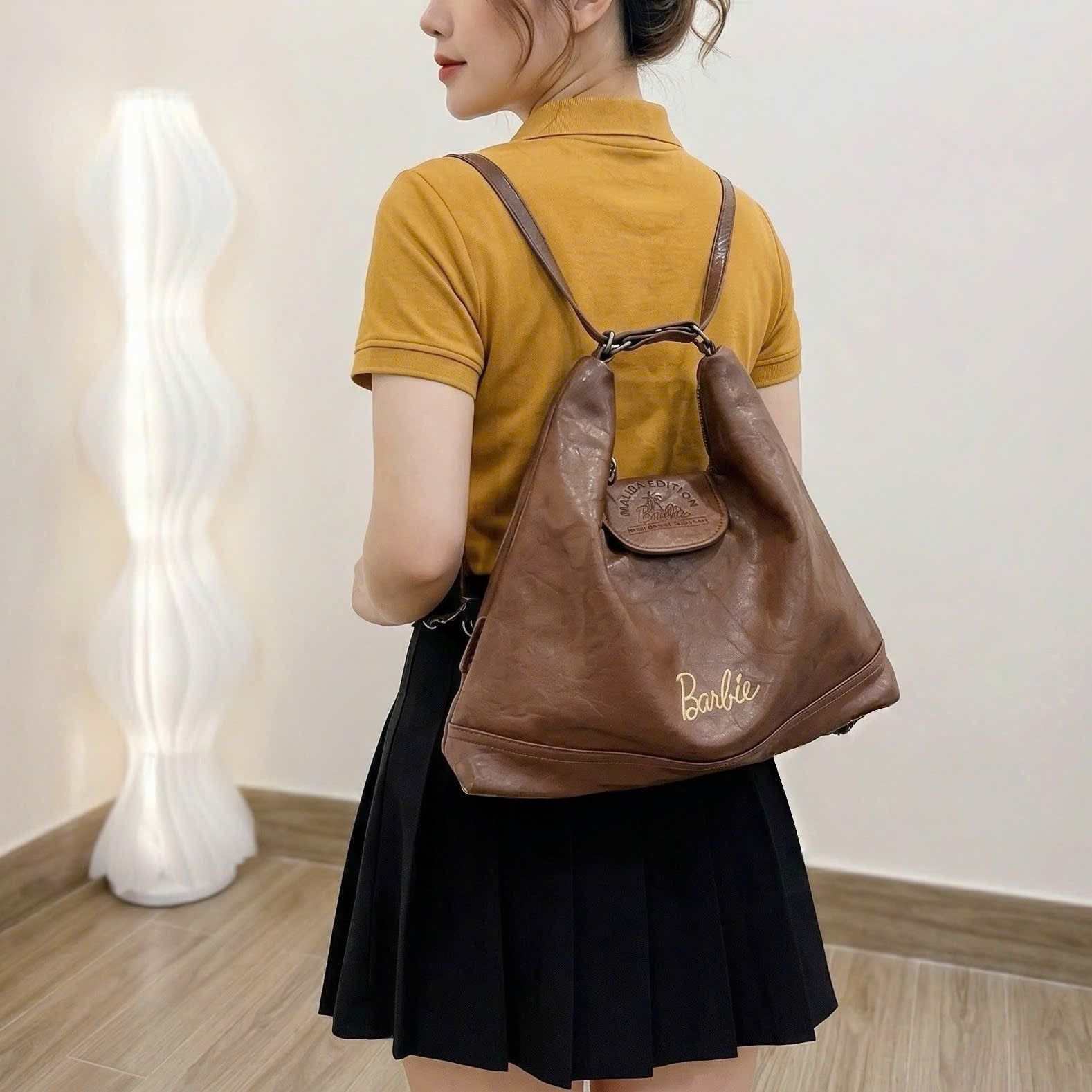 Túi S77 xách kiêm balo da mềm Barbie S77-24 / 22.5x33 / NÂU
