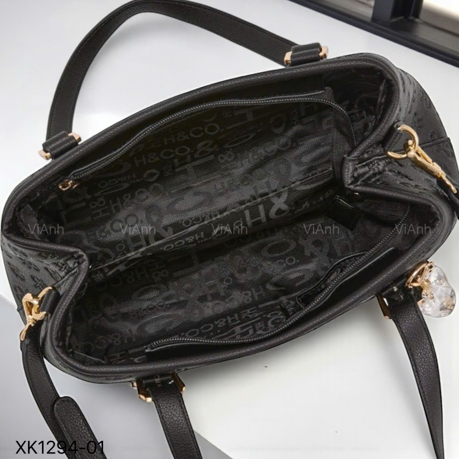 Túi xách D94 style Âu Mỹ phom thang xách tay vân chữ dập chìm CĐC XK1294 / m26 đ31 c22 / ĐEN