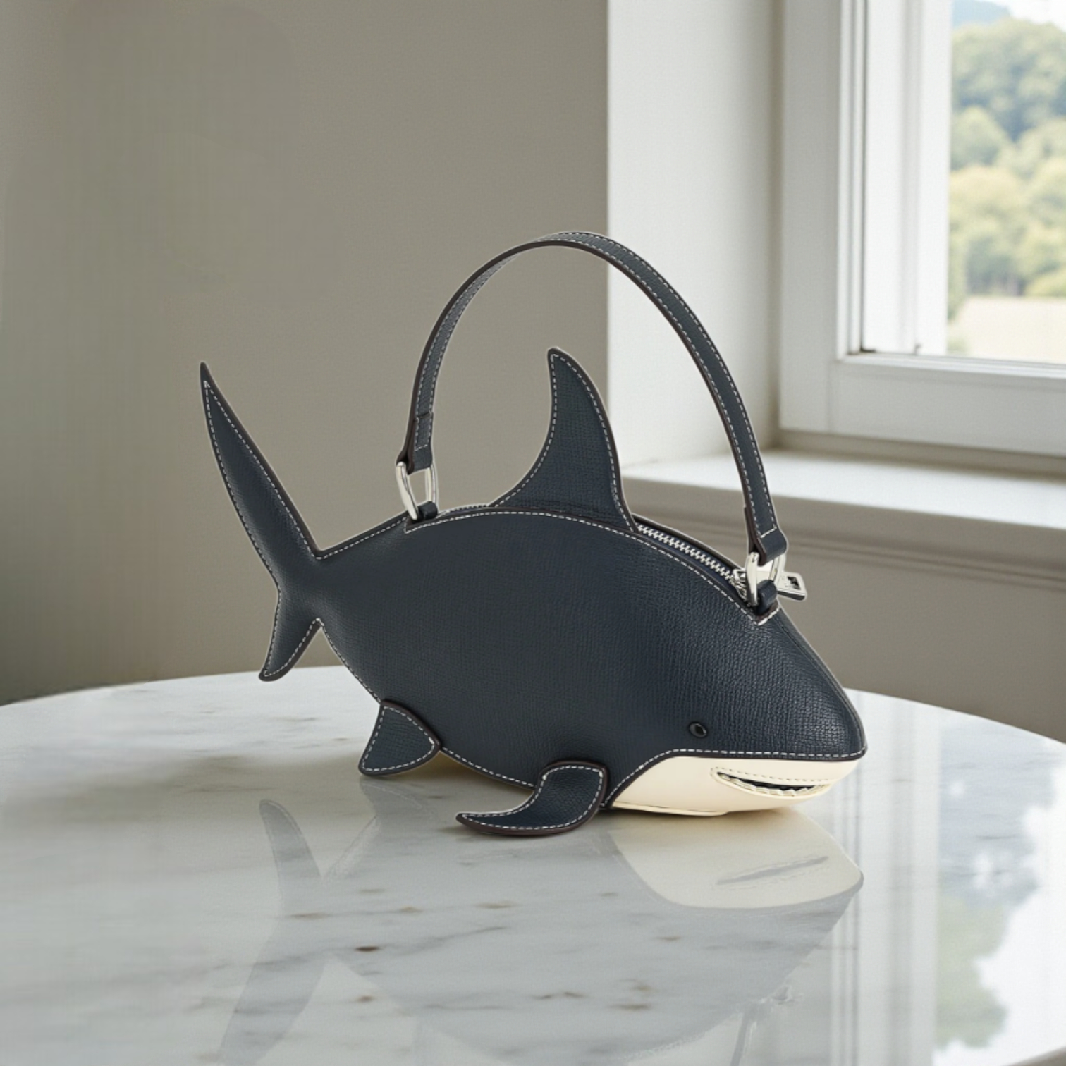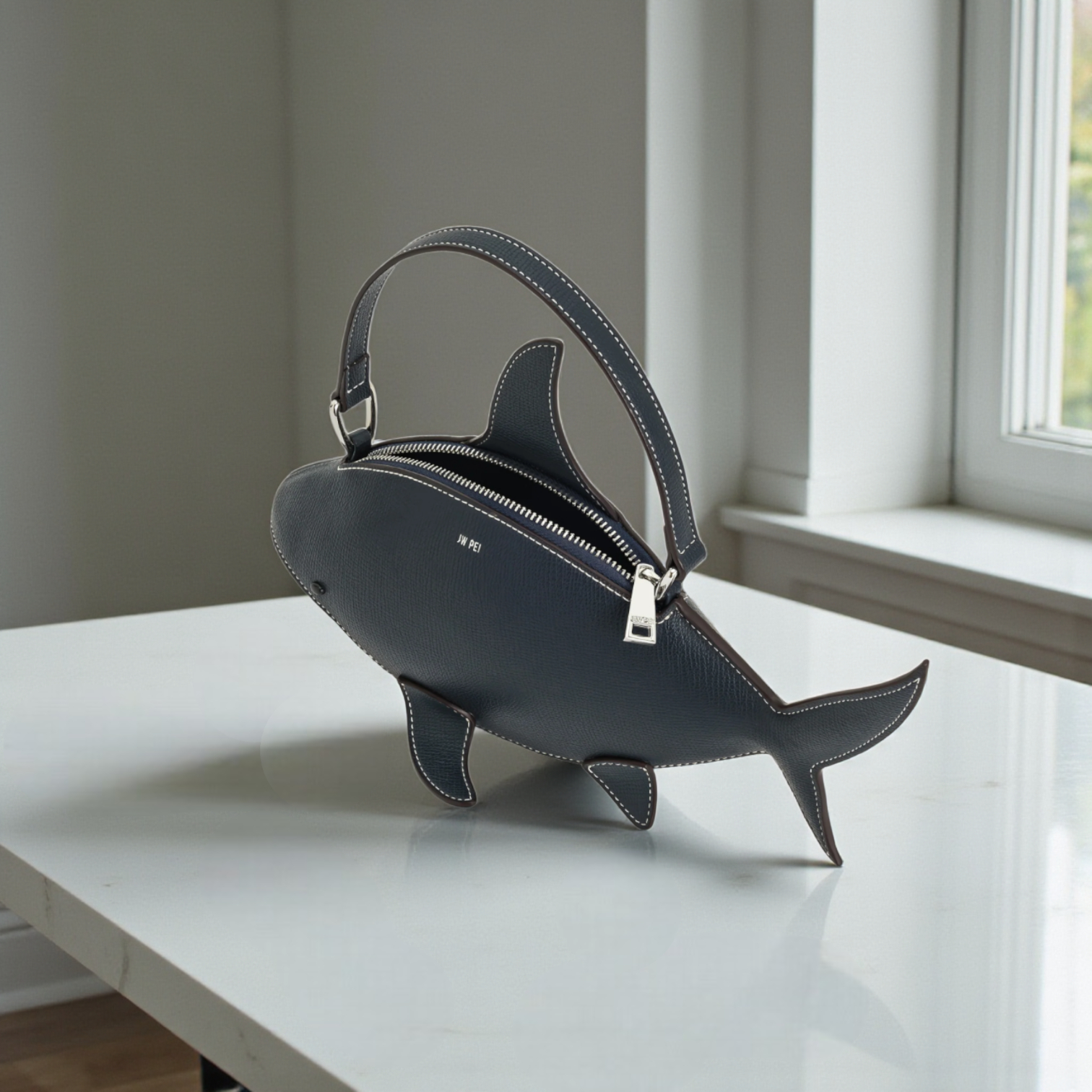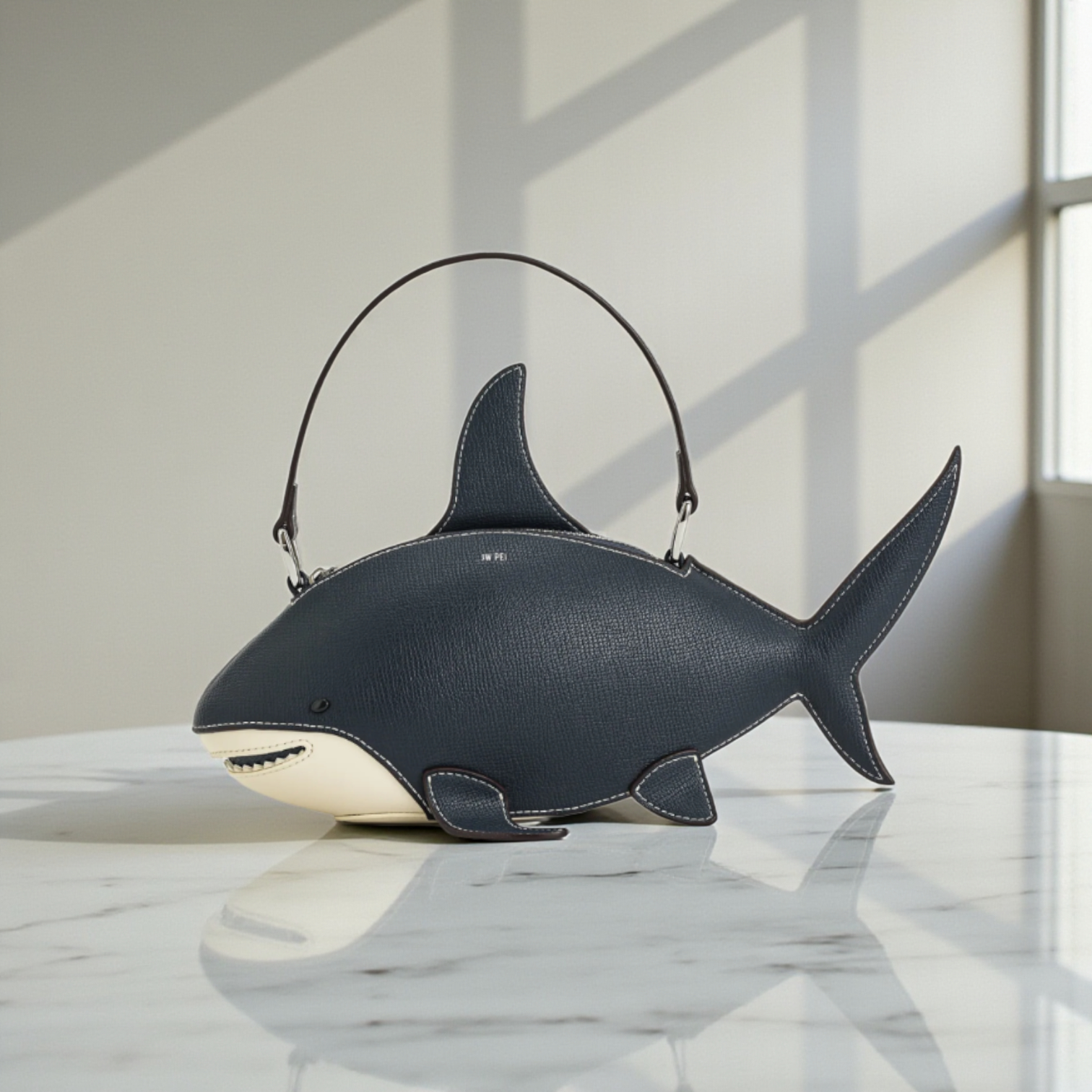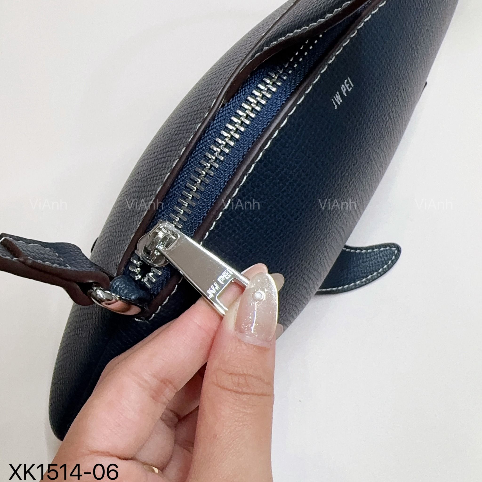 Túi P14 xách tay cá mập xanh trắng JW Pei / ngang 26 x 12 / XANH TRẮNG - XANH TRẮNG