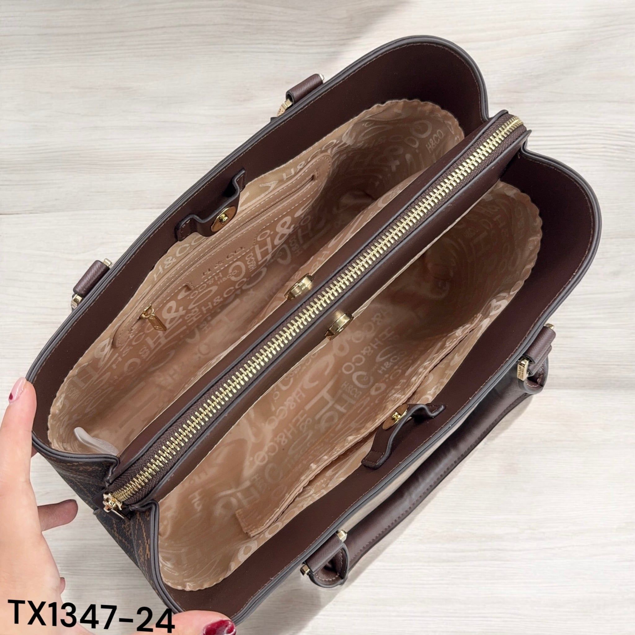 Túi xách TX1347 chữ nhật nhiều ngăn xách tay / 32x22 / NÂU