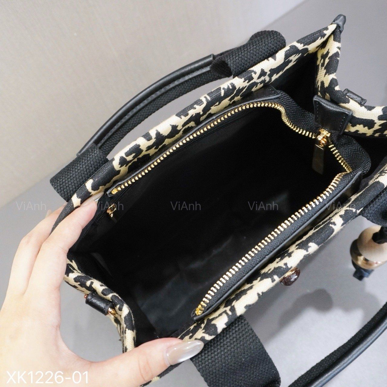 Túi xách X26 xuất Âu chữ nhật xách tay canvat vân da báo kèm CHR XK1226 / 26x22 / ĐEN