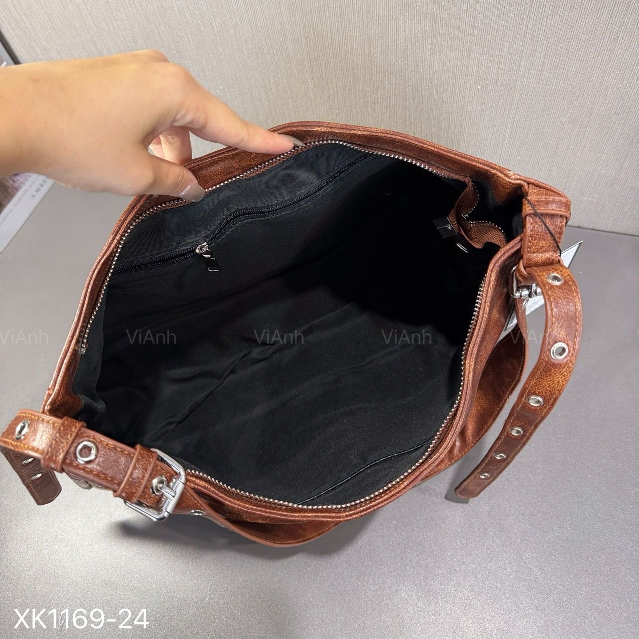 Túi xách X69 xuất Âu phom thang da vân XK1169 / m33 đ38 c28 / NÂU